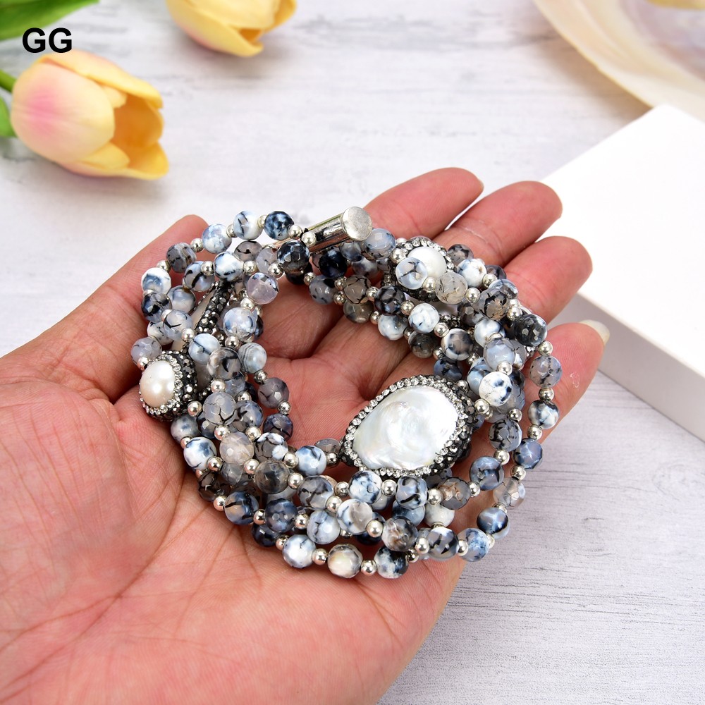 Gem information: freshwater cultured pearl, round White Pearl, round gray agate, good quality, high luster!