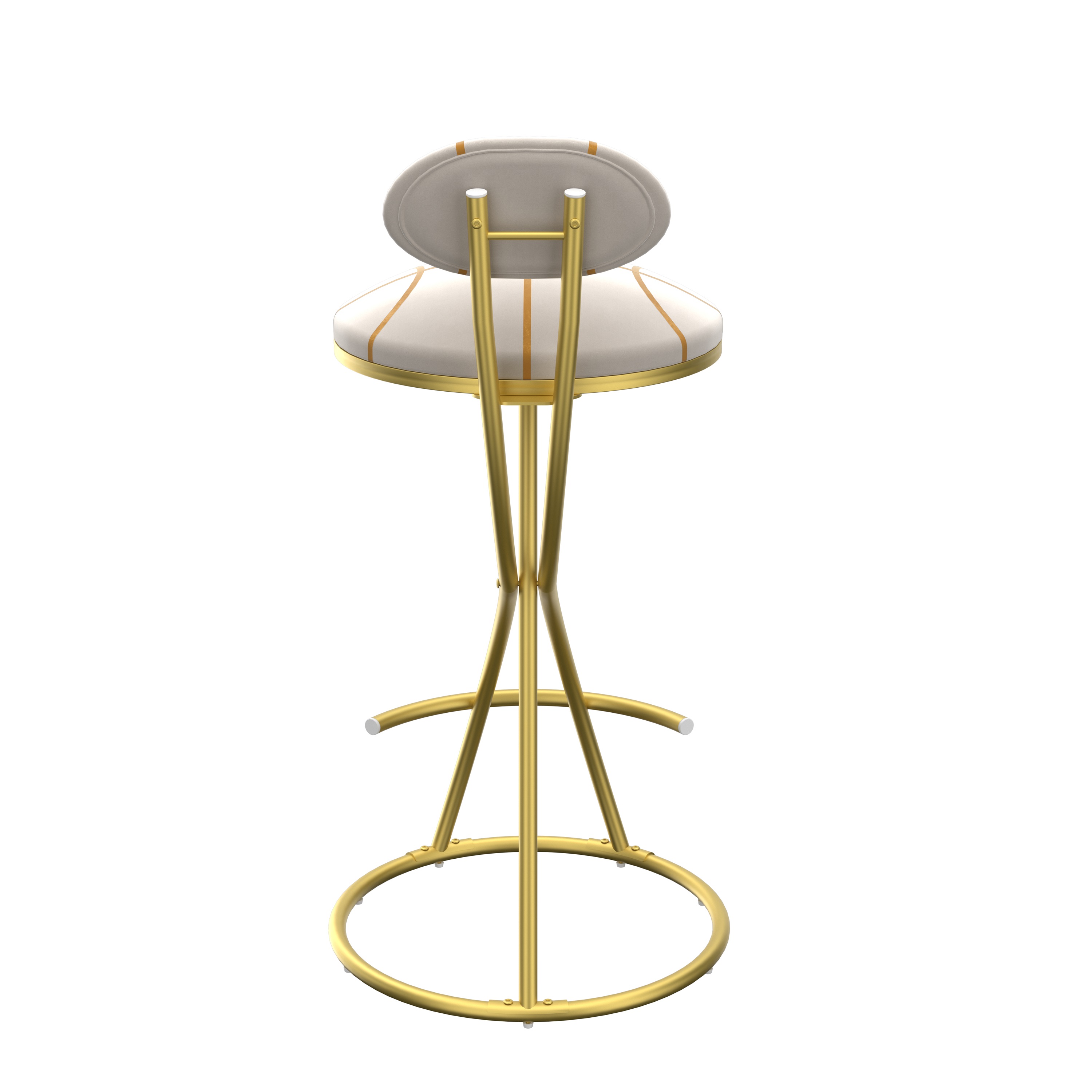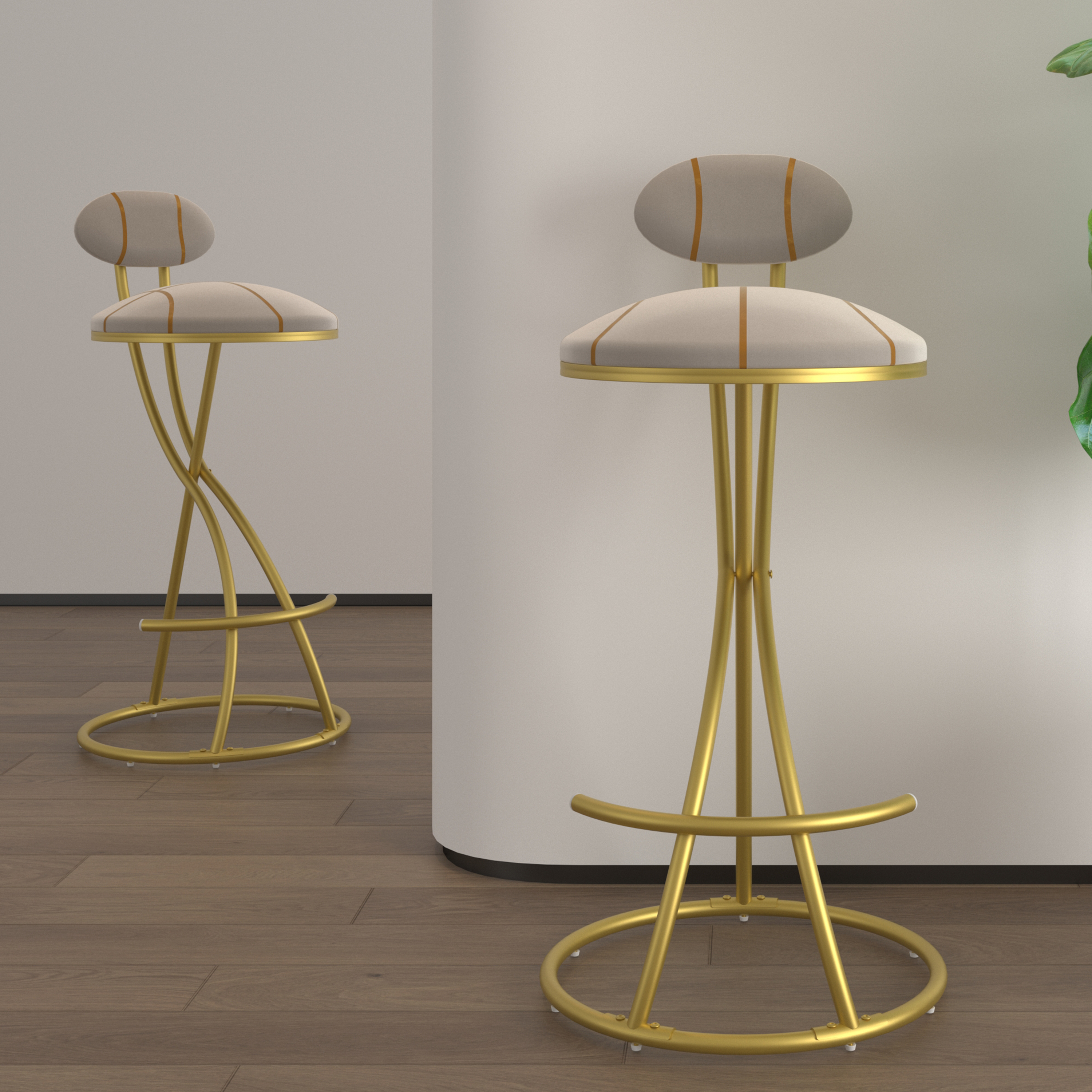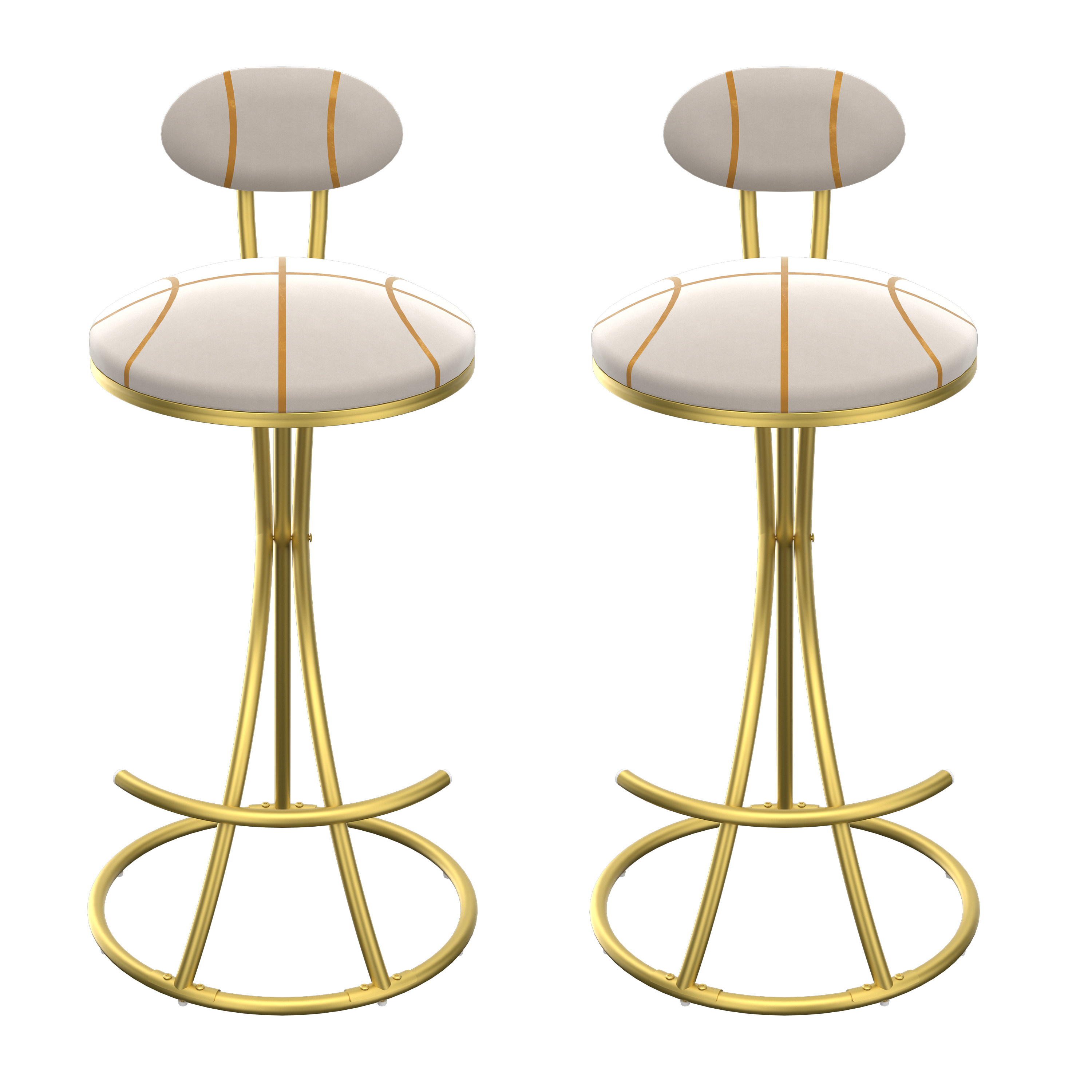 Experience unparalleled comfort with our velvet barstools featuring a soft, padded striped cushion and a convenient built-in footrest for total relaxation. Designed for both style and practicality, the velvet seat with supportive backrest is filled with soft foam cushioning, ensuring lasting durability and day-long comfort. Premium anti-scratch velvet upholstery keeps your stools looking pristine while making cleaning effortless—simply wipe away spills. Built to impress and endure, these sturdy counter height stools boast a robust solid metal frame finished in a sophisticated matte golden powder coating. This elegant base provides exceptional stability, enhanced by non-slip foot pads that protect your floors from scratches. The minimalist design, highlighted by meticulous stitching, seamlessly complements contemporary and traditional decor alike. Supporting up to 220 pounds, these stools guarantee years of reliable use. Ideal for counter heights, they measure 17.12”(L) x 14.96”(W) x 36.61”(H), fitting perfectly under most tables, bars, and kitchen islands. Their versatile design makes them perfect for dining tables, kitchen counters, home bars, restaurants, pubs, bistros, cafes, coffee bars. Assembly is quick and straightforward, requiring just a few simple steps with all necessary hardware and clear instructions included. Elevate your seating space with these effortlessly stylish, supremely comfortable, and exceptionally functional velvet barstools today!