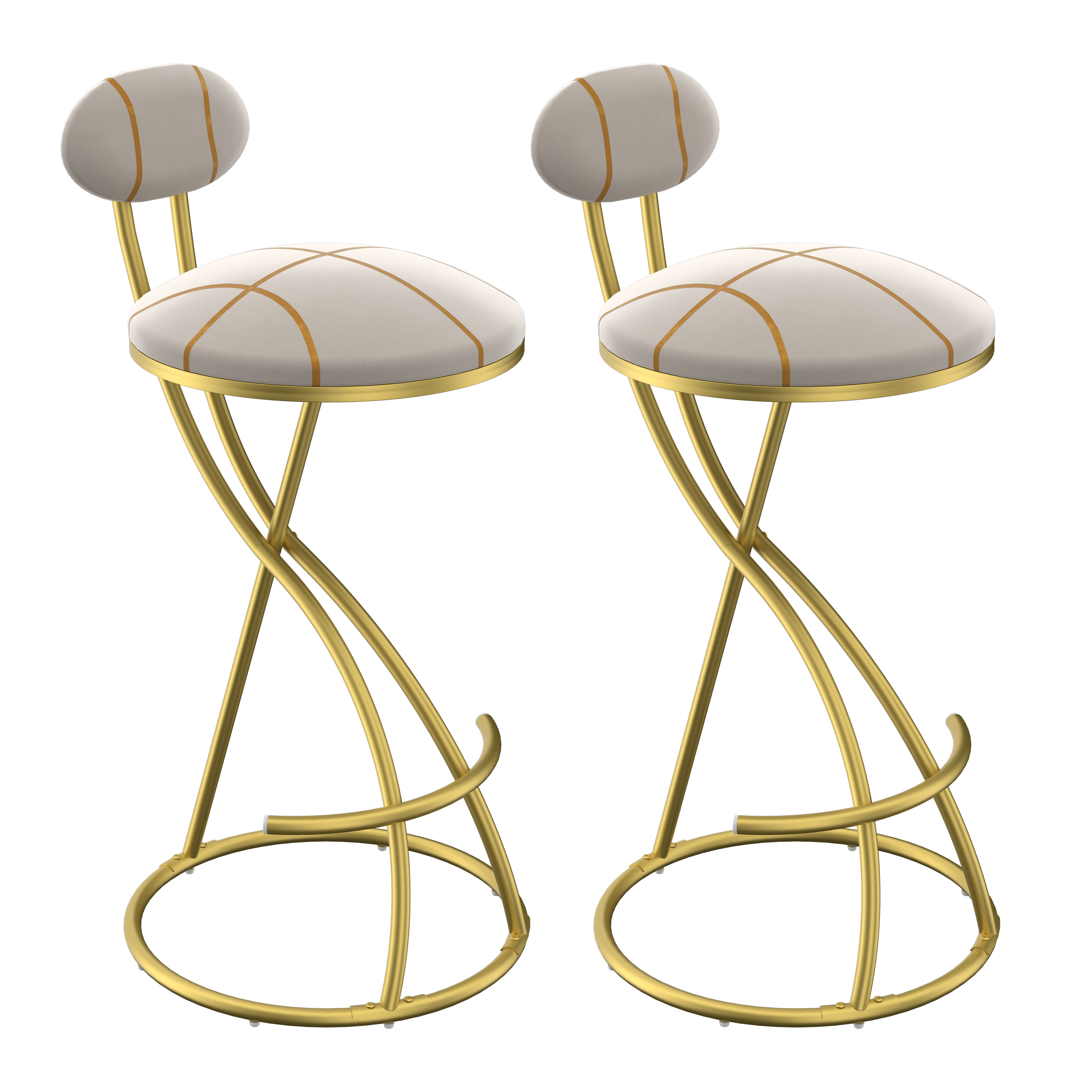 Product Name:Round Bar Stools S-shaped Stripe Kitchen Stool Set of 2 Modern Velvet Upholstered Counter Chair for Dining Room (Gold & Stripe)