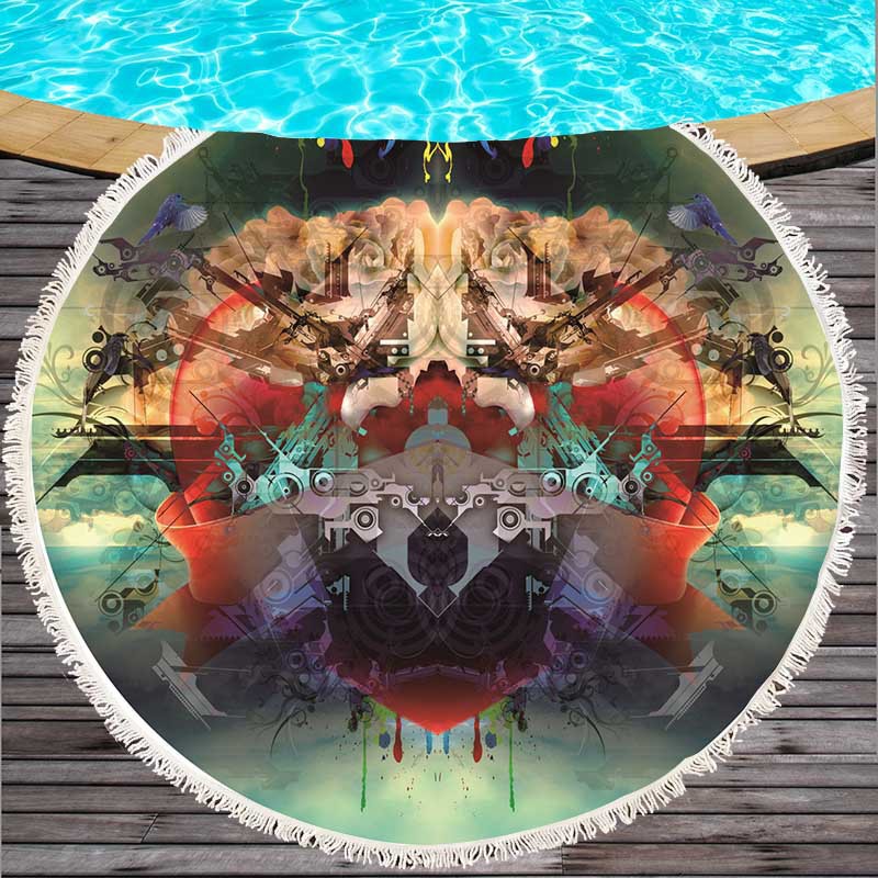 Our circular beach towel printing adopts environmentally friendly active printing, which is not only environmentally friendly, bright in color, but also non-fading and soft. 150cm in diameter. The fabric is warp-knitted microfiber