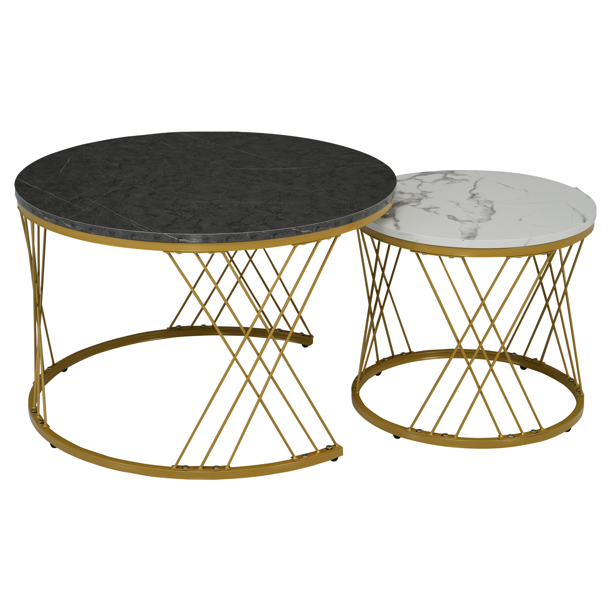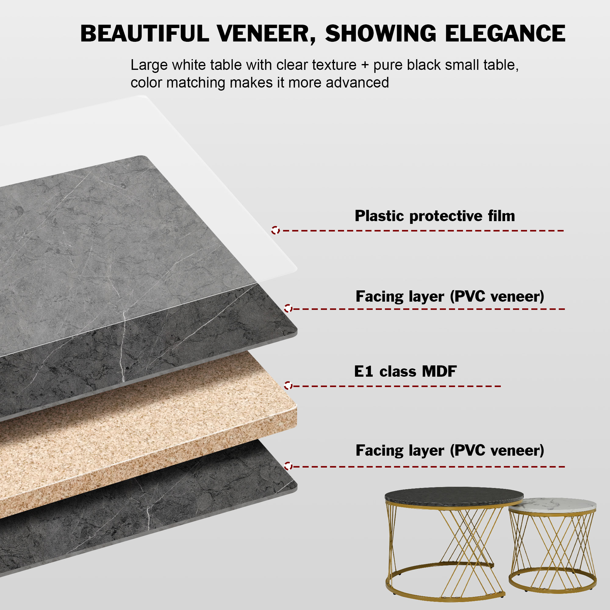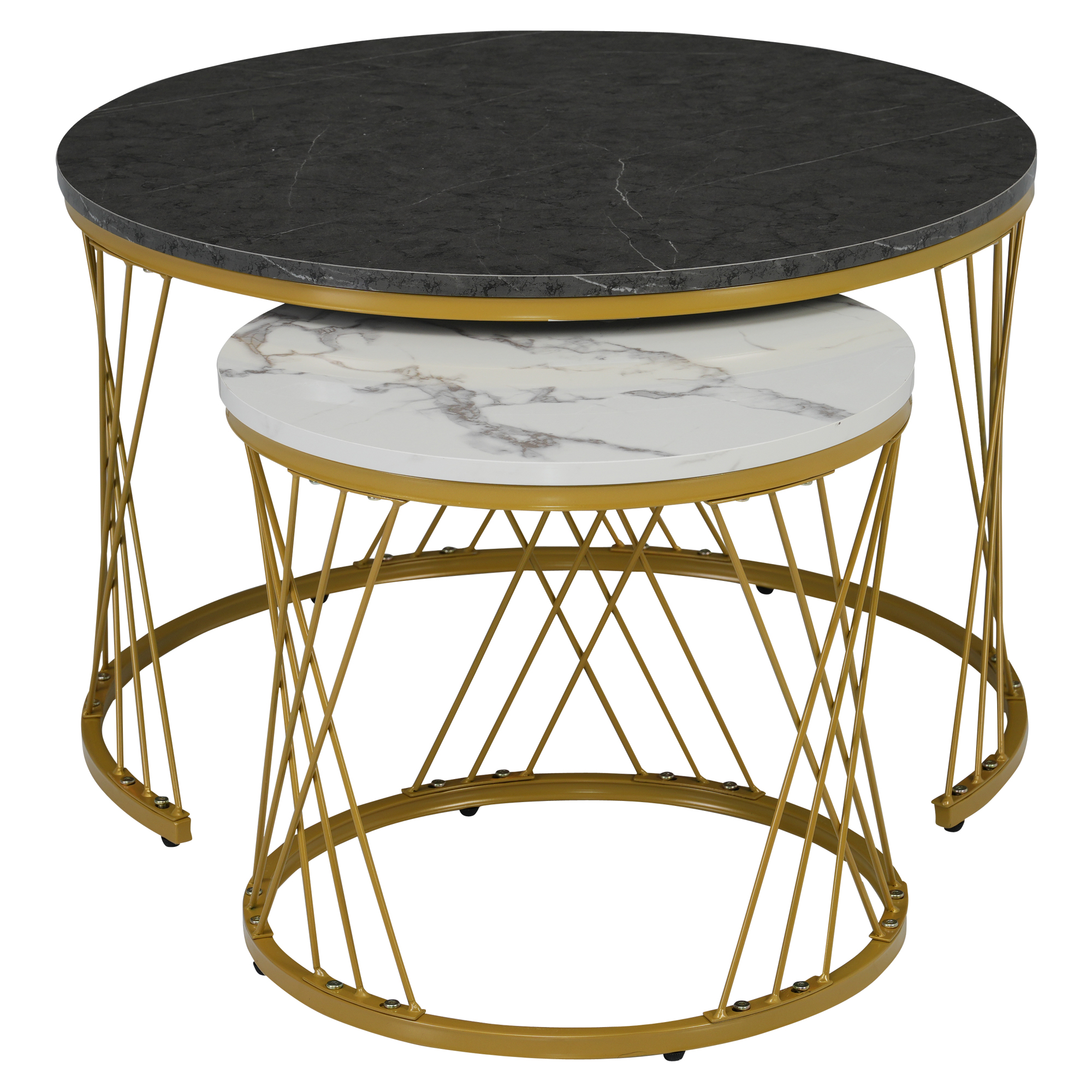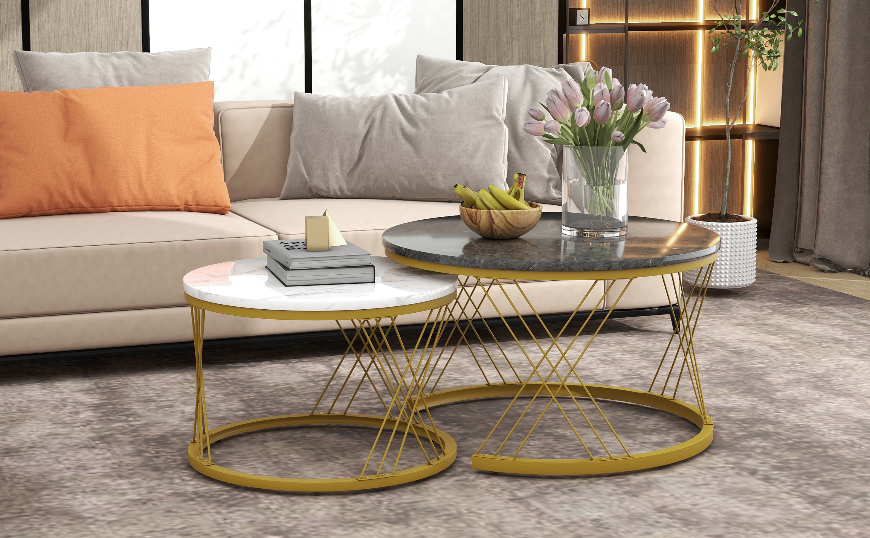 Product Name:Round Coffee Table, Modern Coffee Table Set of 2 Marble Pattern Top with Metal Frame, Small Side Table, End Table for Living Room, Bedroom, Home Office, Farmhouse, white and Black