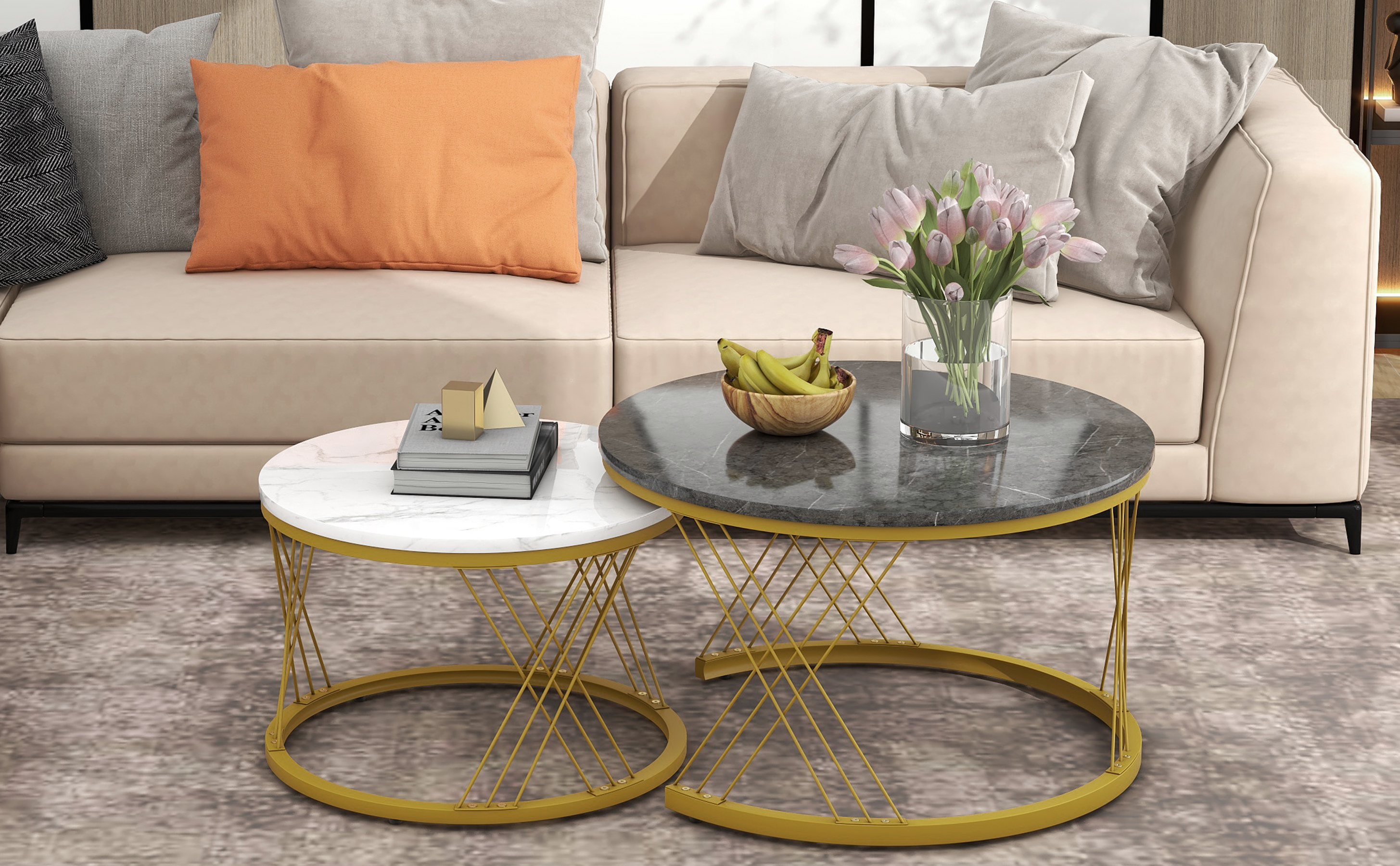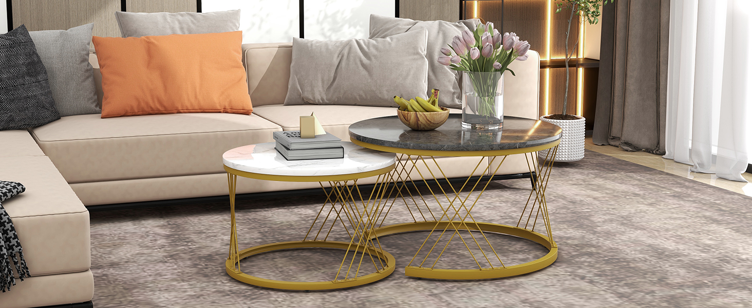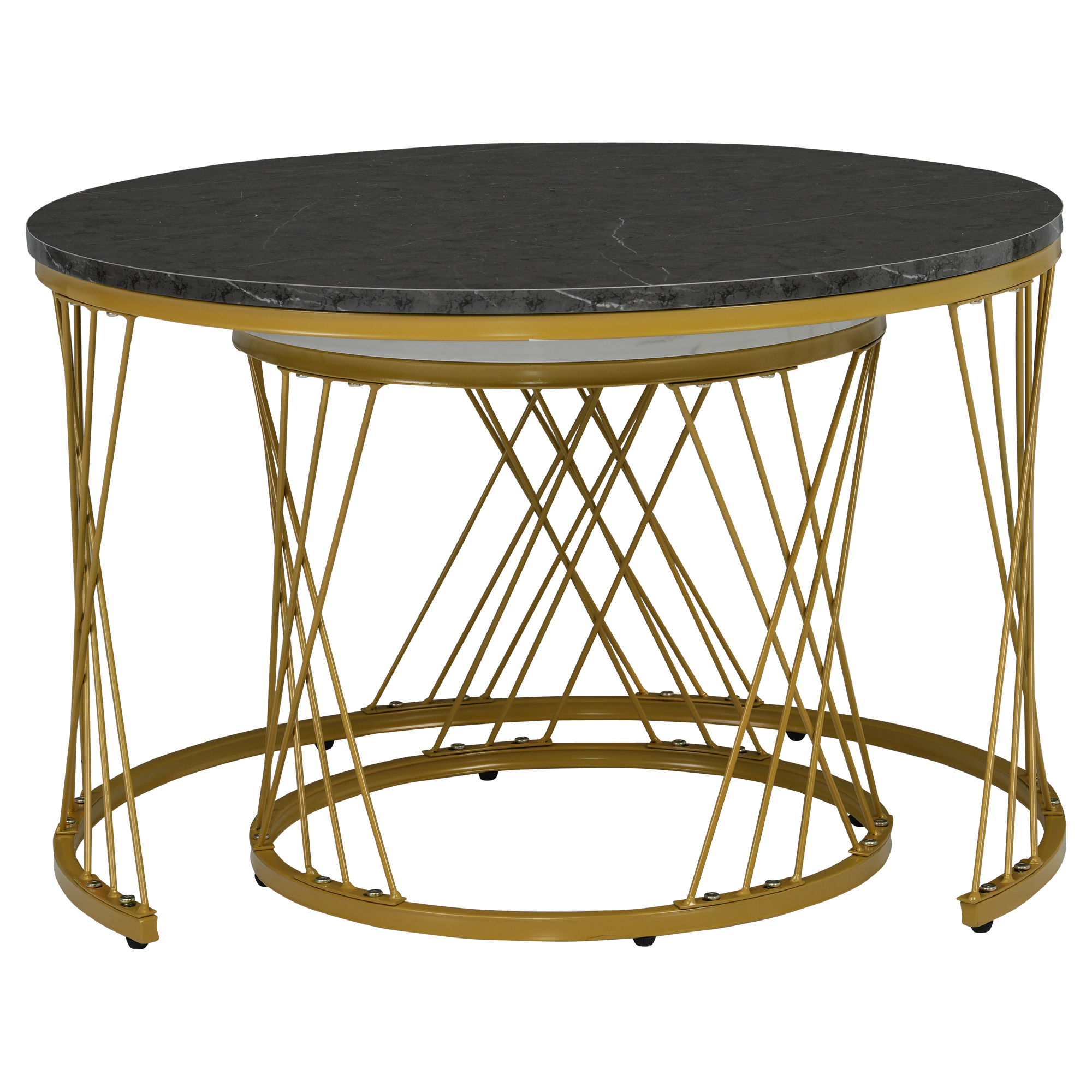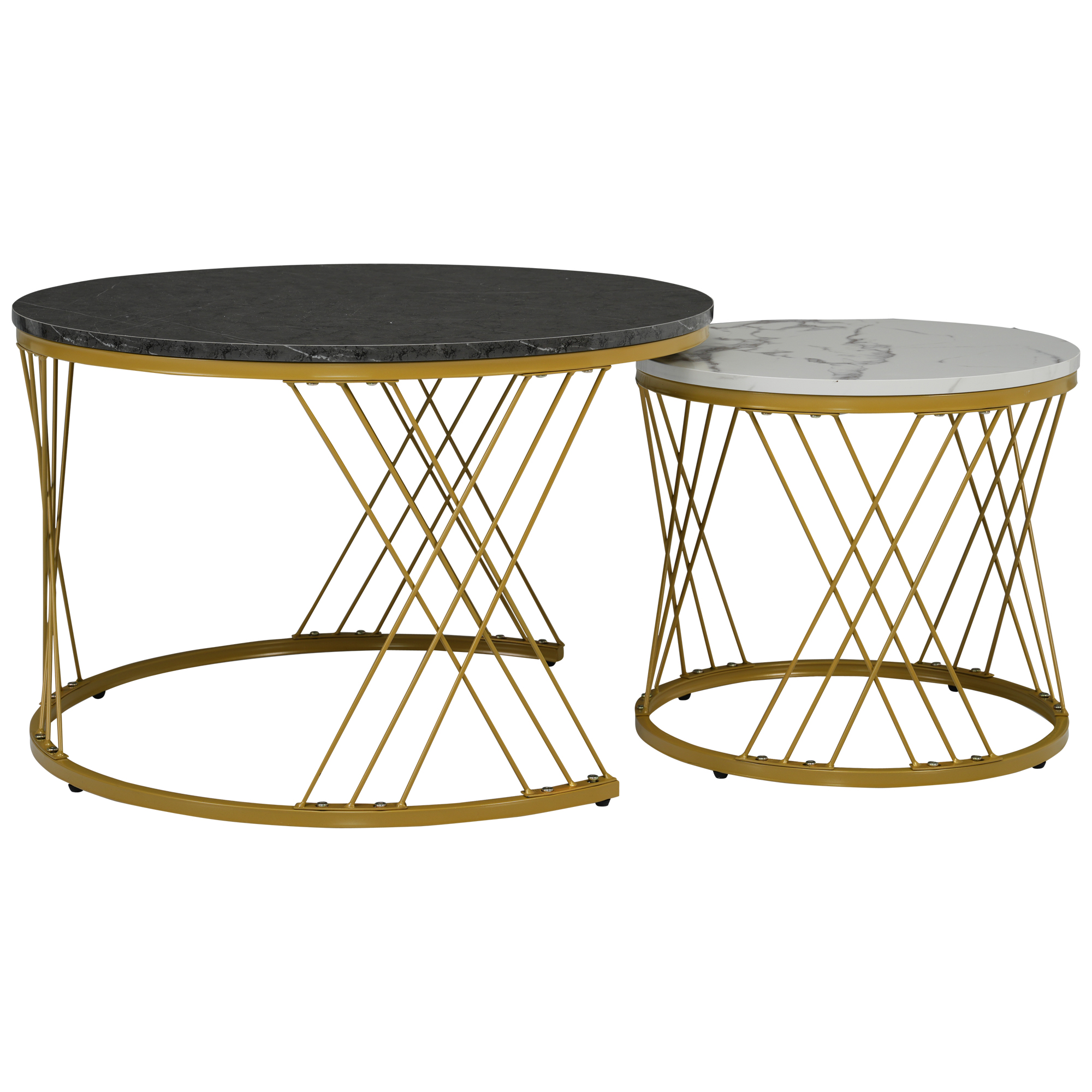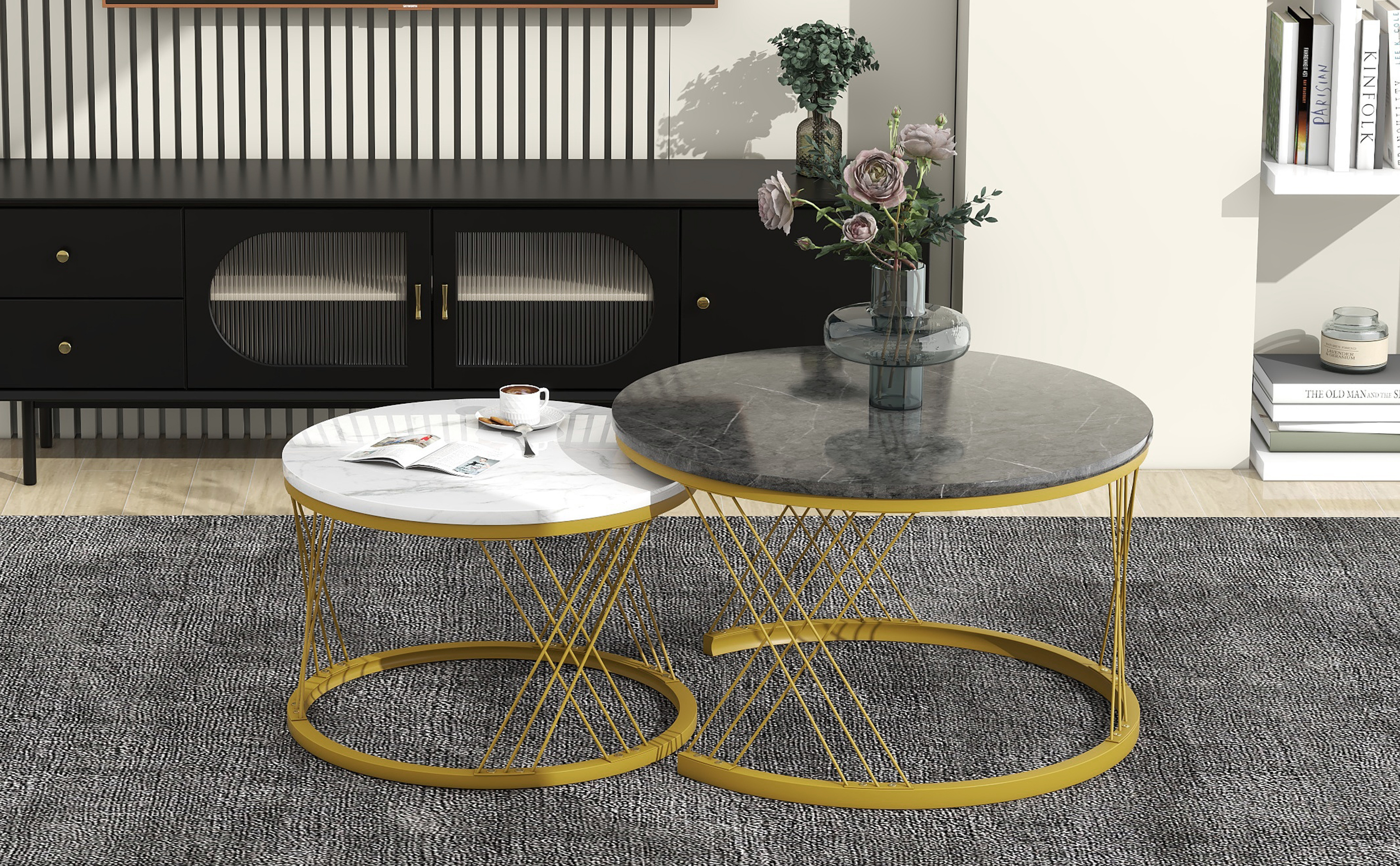 Product Name:Round Coffee Table, Modern Coffee Table Set of 2 Marble Pattern Top with Metal Frame, Small Side Table, End Table for Living Room, Bedroom, Home Office, Farmhouse, white and Black