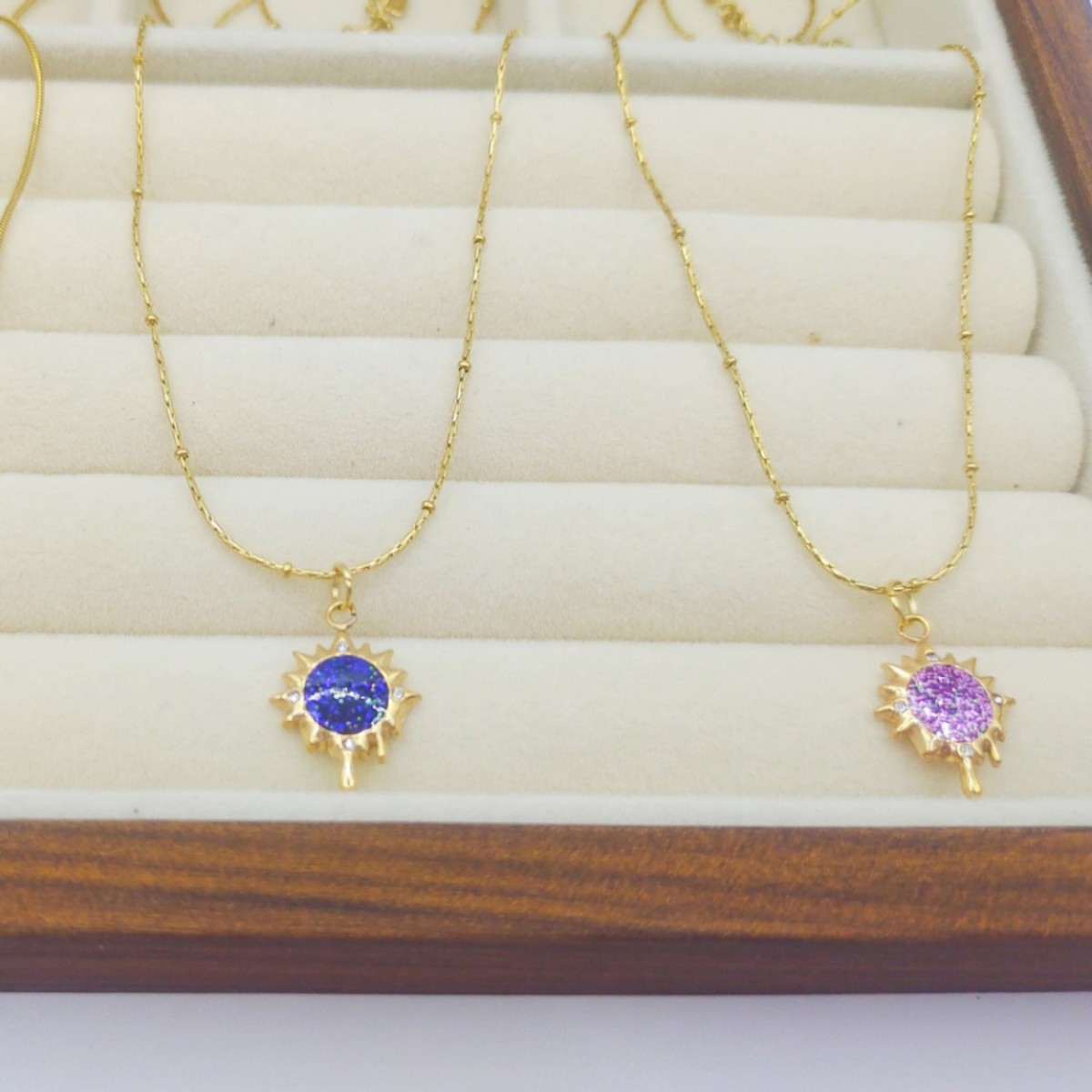 Product information:Color: pink, purple, blue Material: Stainless steel Shape: Geometry Popular elements: Sun