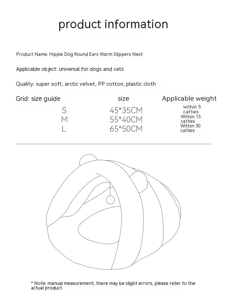 Product information:Color: gray, green Specifications: S ,M ,L Material: pp Cotton Applicable object: Dog