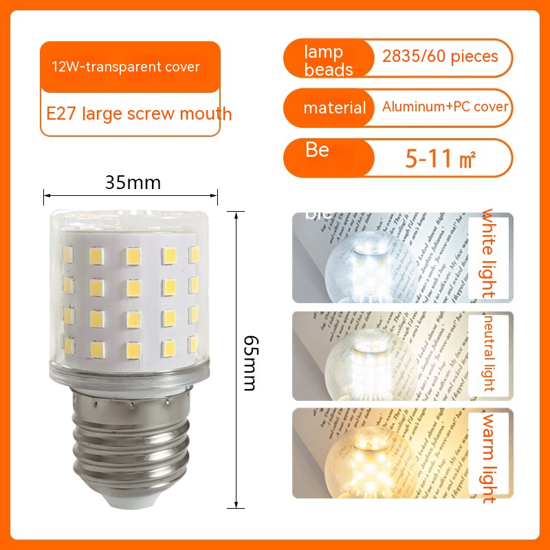 Power: 5W [milk white cover], 5W [transparent cover], 7W [milk white cover], 7W [transparent cover], 9W [milk white cover], 9W [transparent cover]], 12W -- highlight -- [transparent cover], 16W -- highlight -- [transparent cover]]