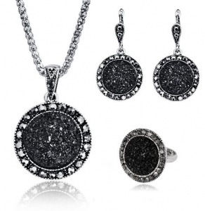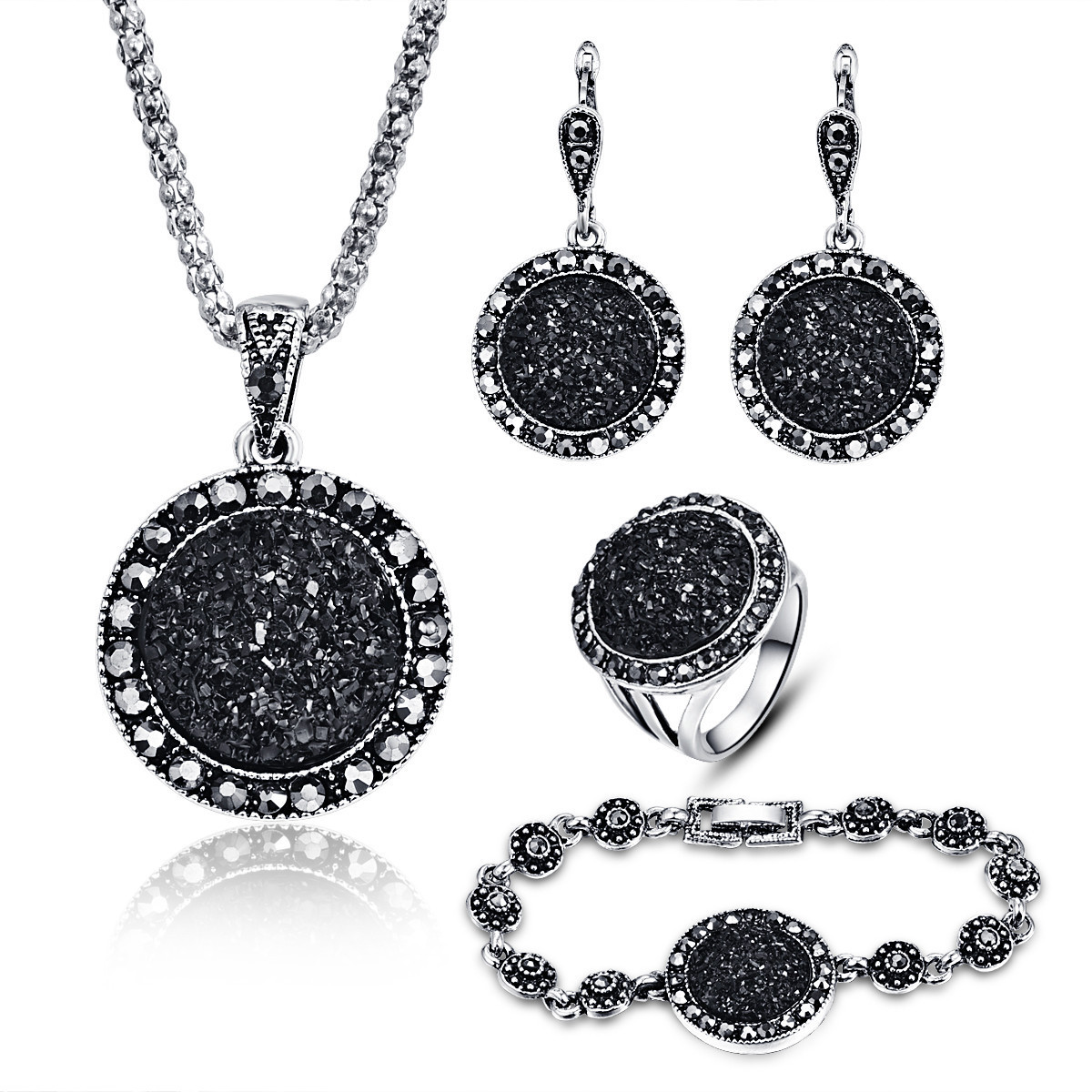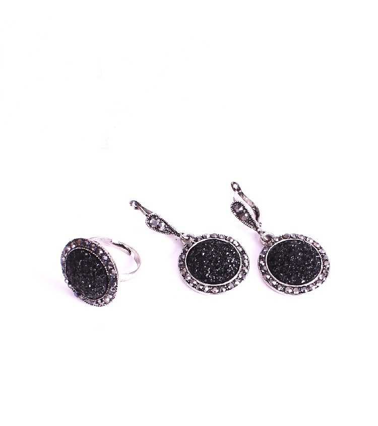 European and American fashion cross-border crystal jewelry set Necklace earring ring oval resin three-piece suit