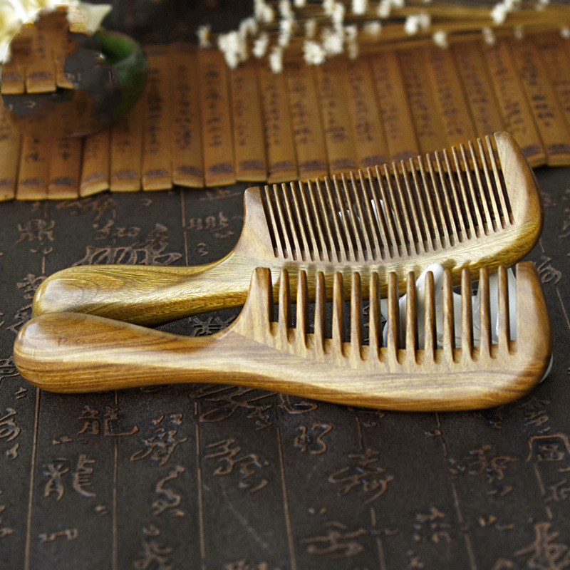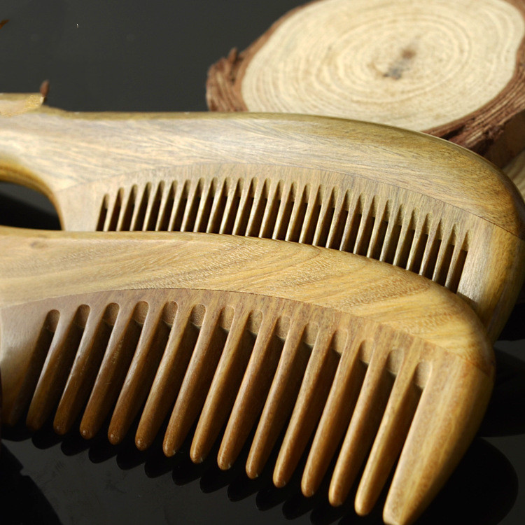 Specifications: A:1108#standard tooth thickened round handle green sandalwood comb# 18*4.5CM, B:1108B# wide tooth thickened round handle green sandalwood comb 18*4.5CM