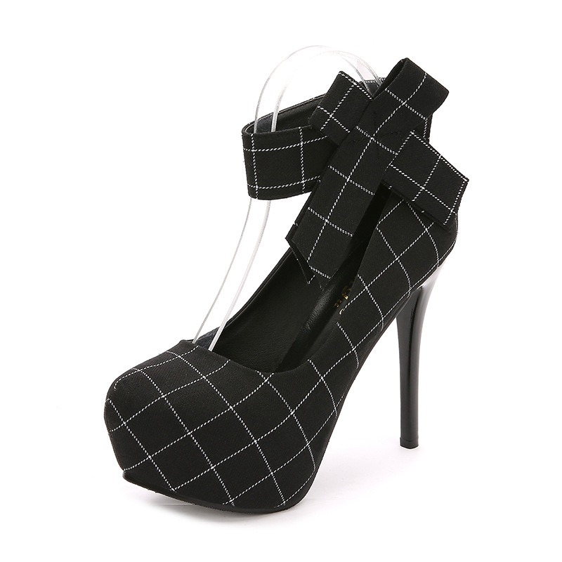 Popular elements: plaid, flanging, stitching, shallow mouth, waterproof platform, ankle ring bandage cloth, height increasing insole