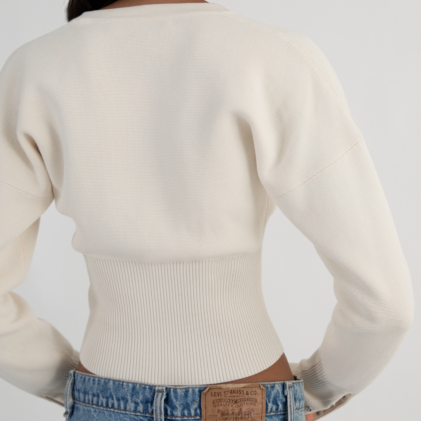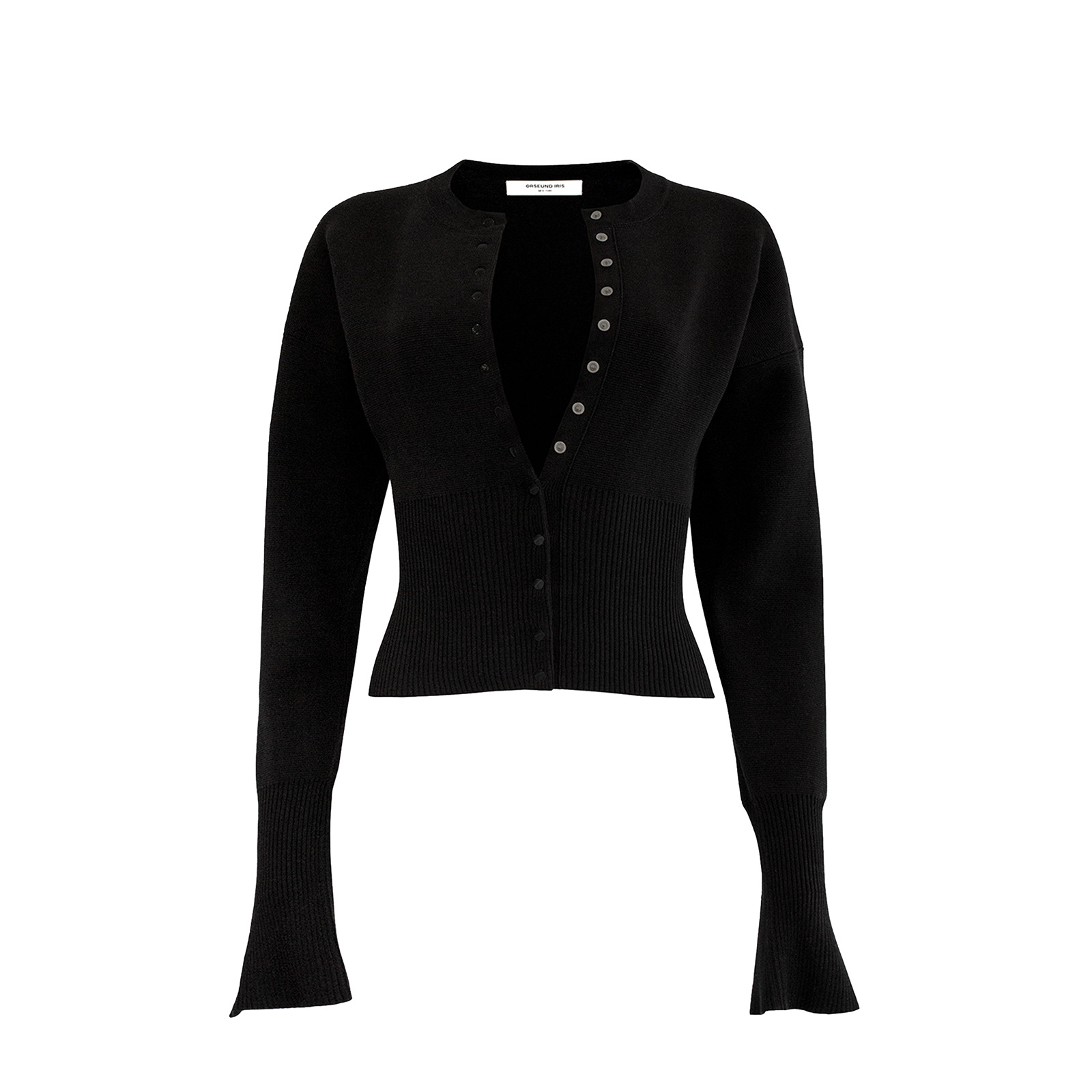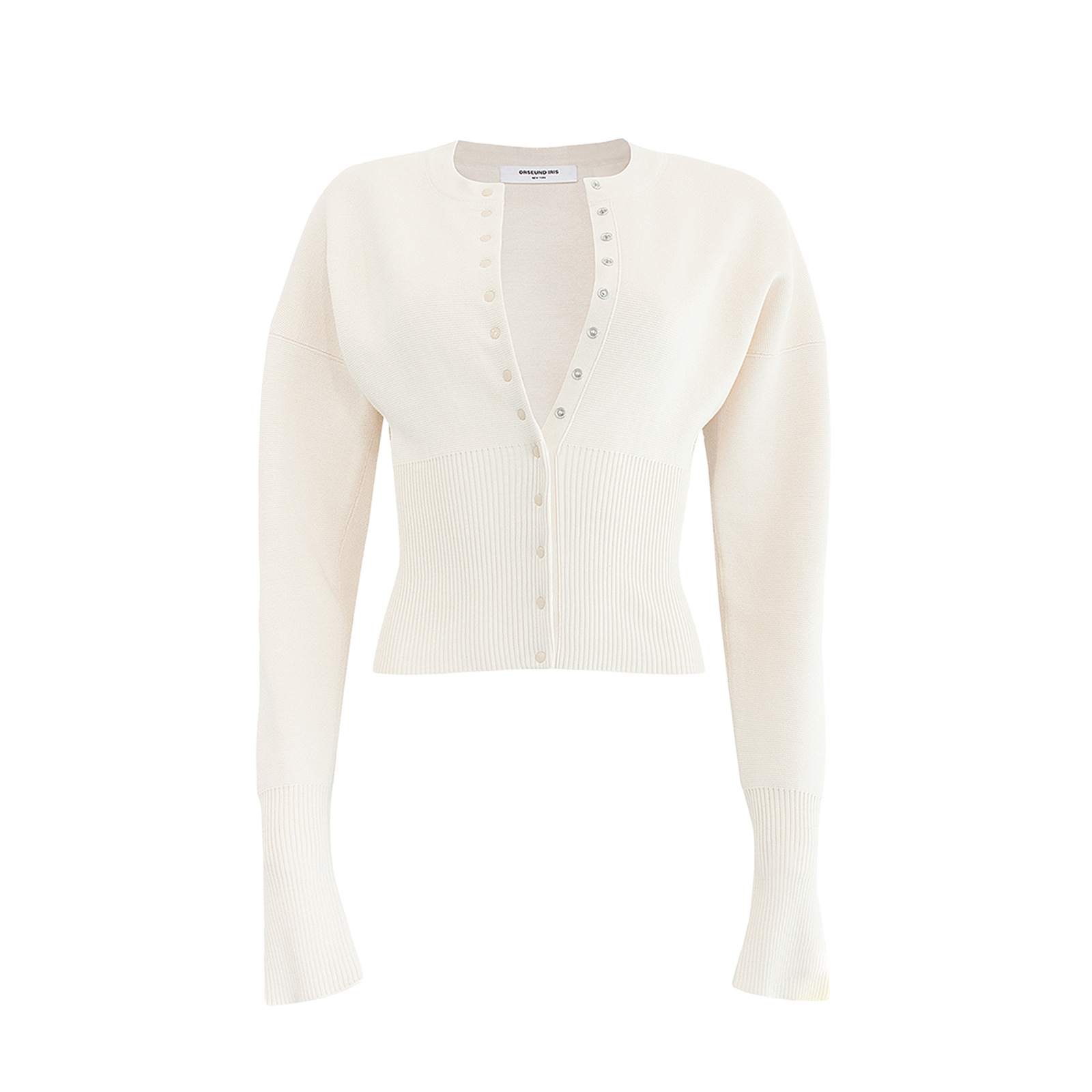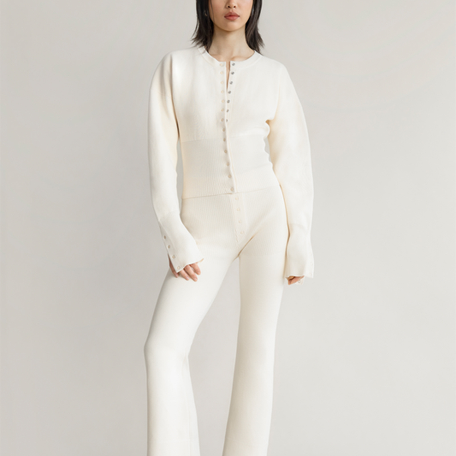 Round Neck Button Rib Tight Long Sleeve Top