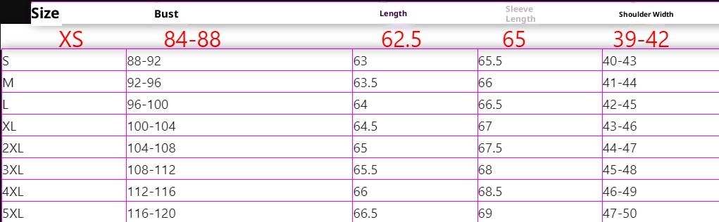 Size: XS, S, M, L, XL, 2XL, 3XL, 4XL, 5XL