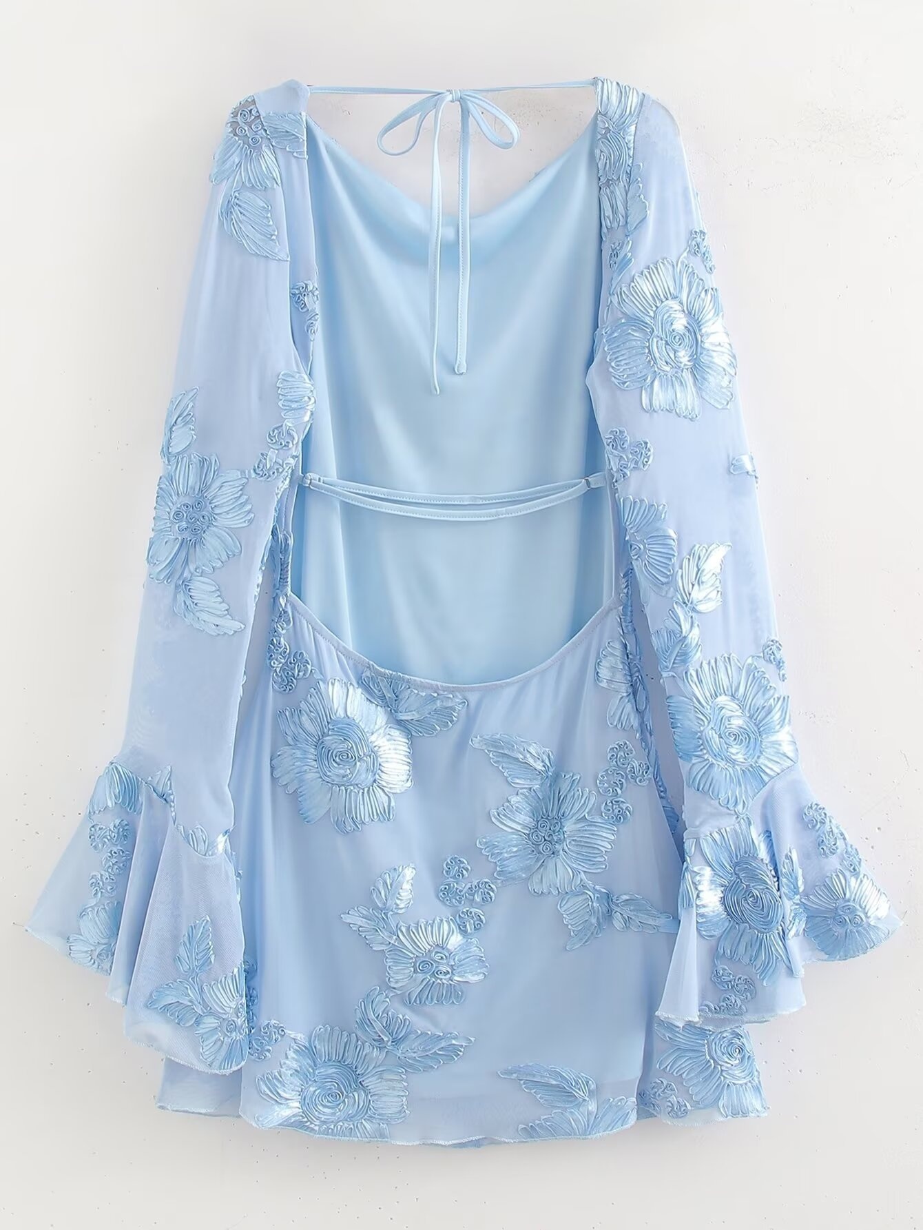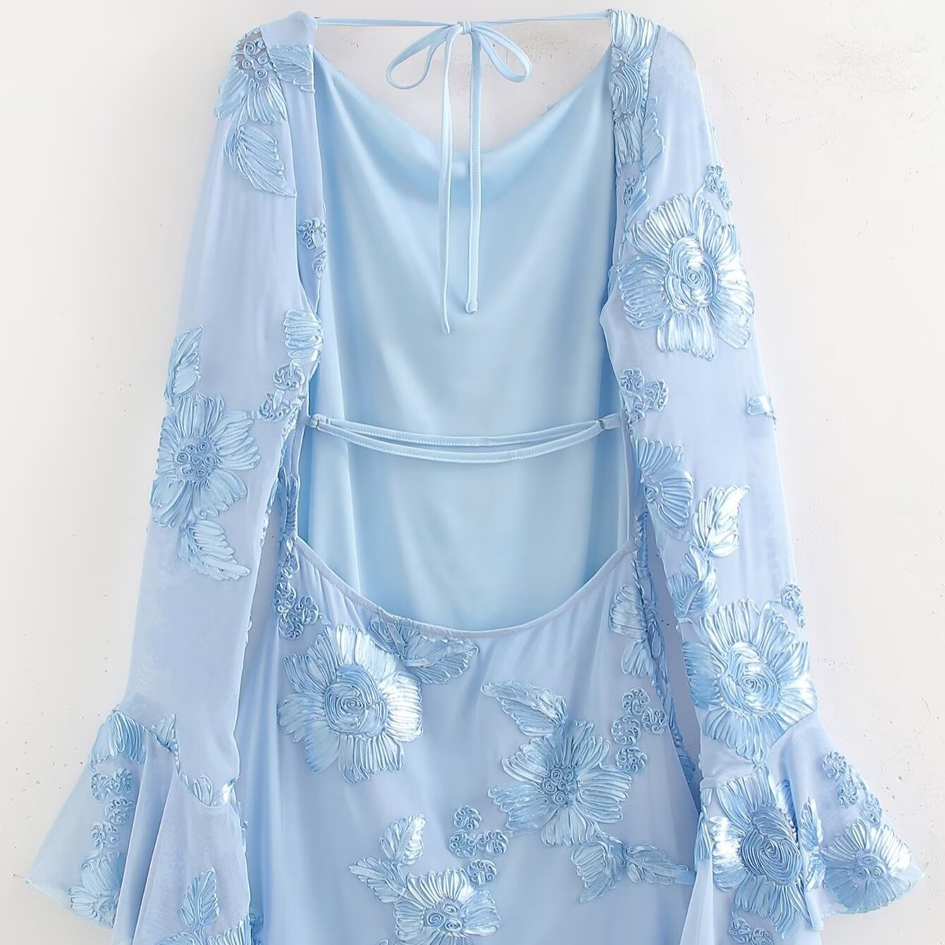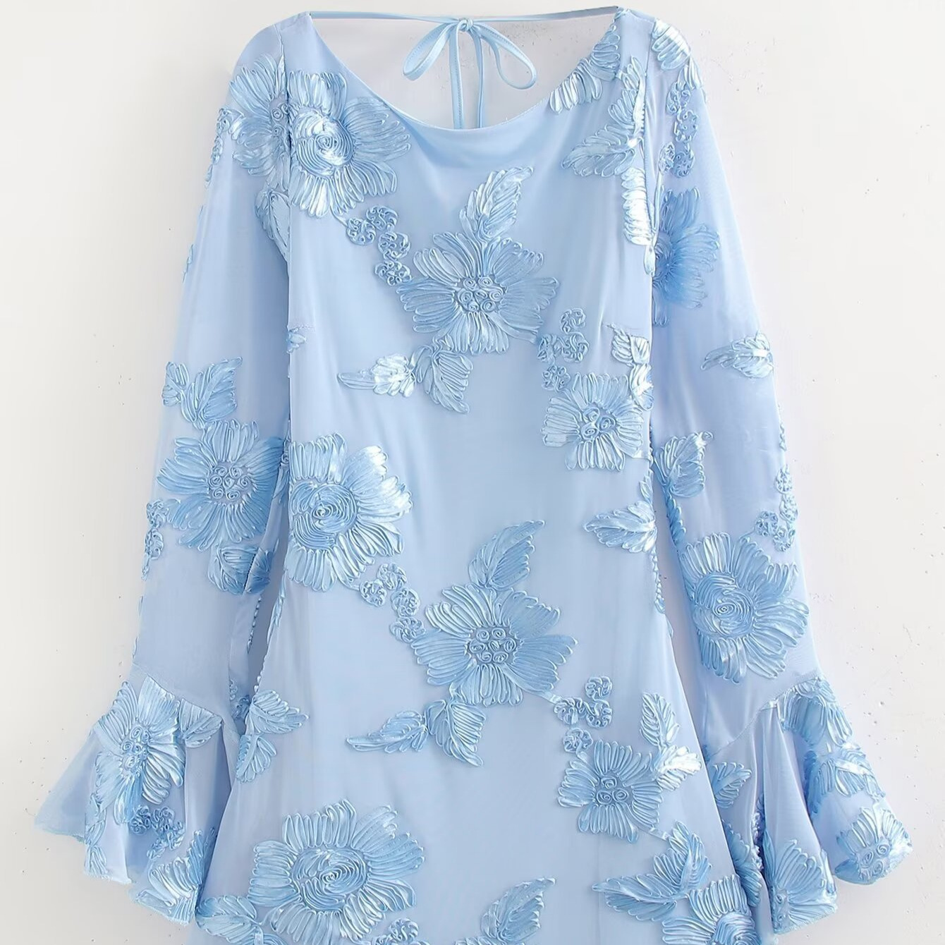 Round Neck Elegant Backless Mesh Three-dimensional Dress
