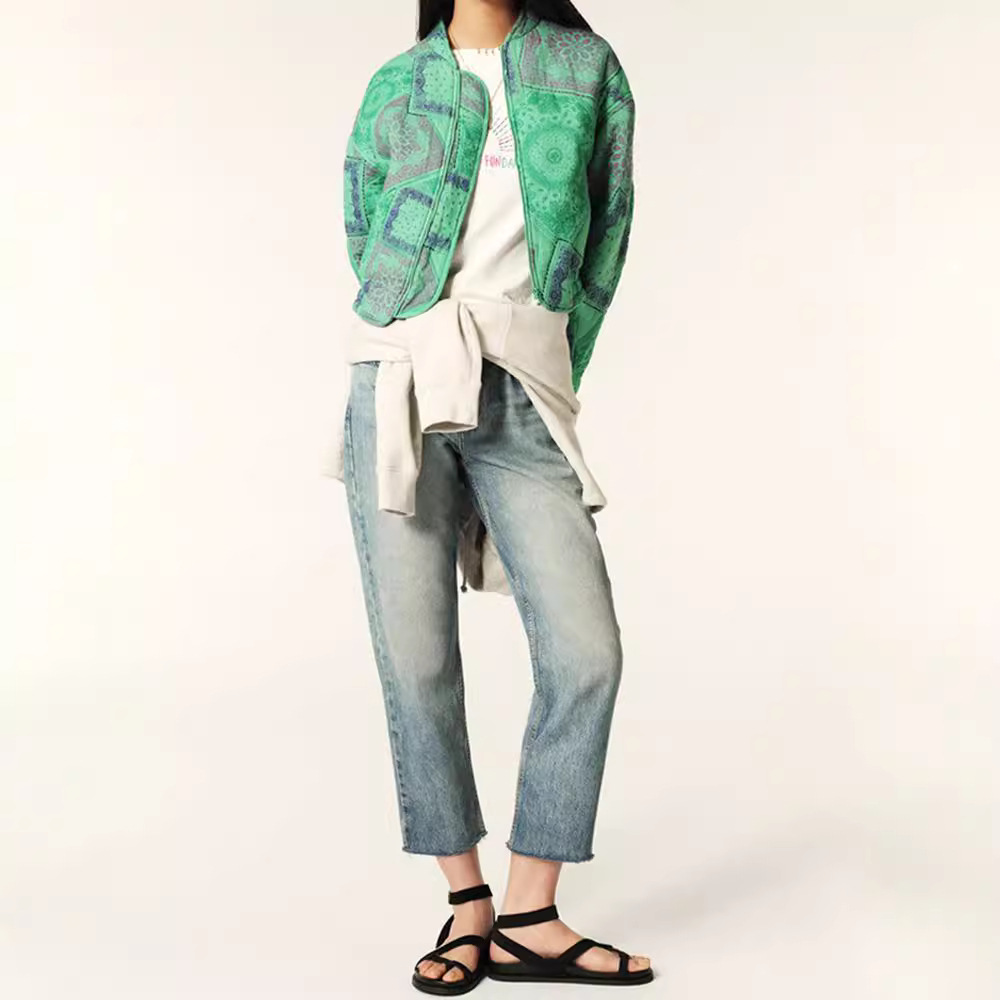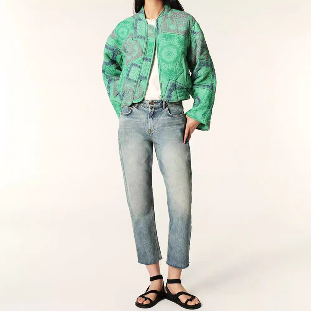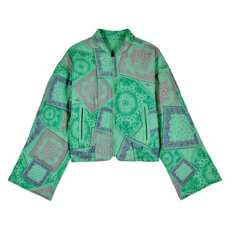 Color: printed short zipper jacket
