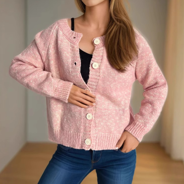 Round Neck Long Sleeve Stitching Casual Cardigan