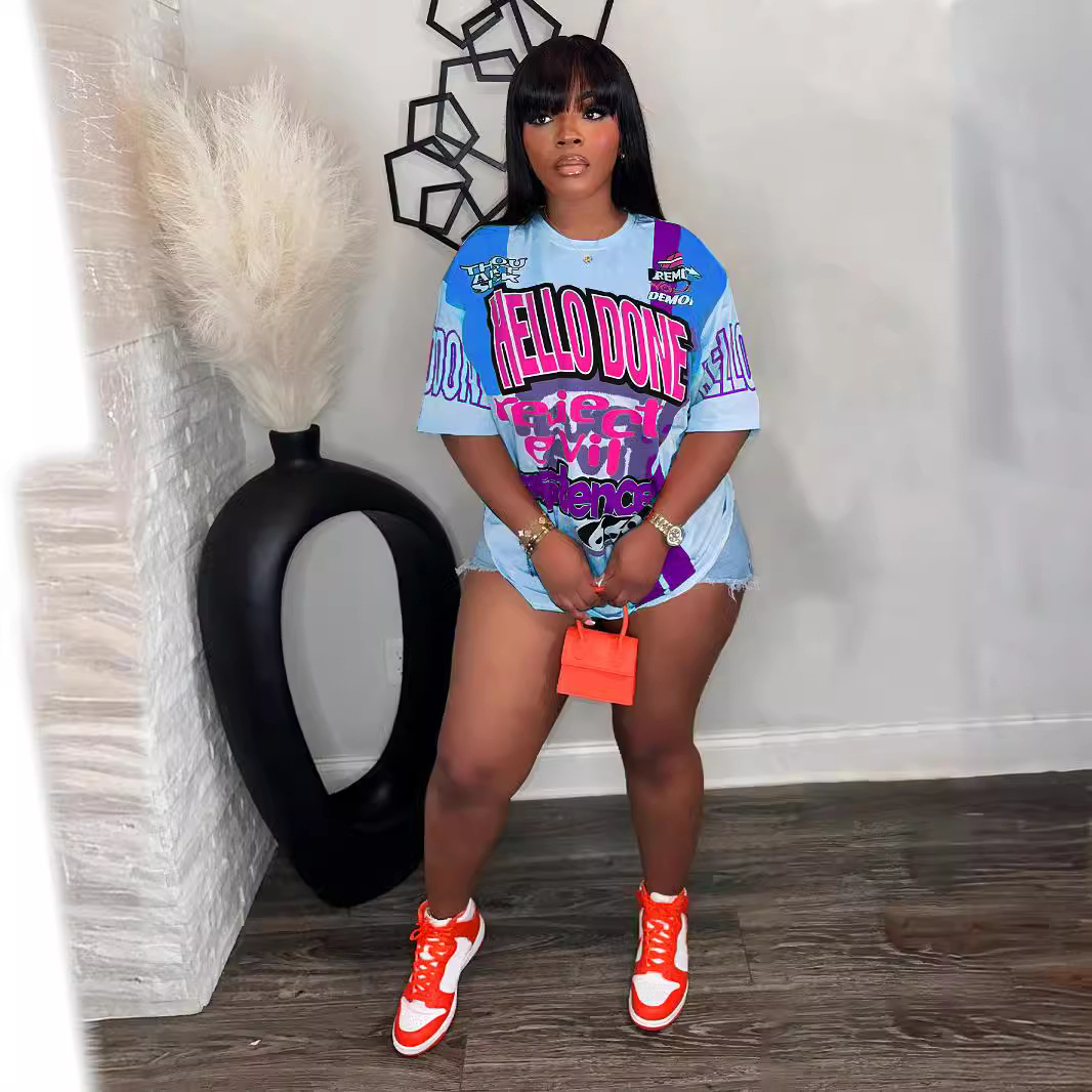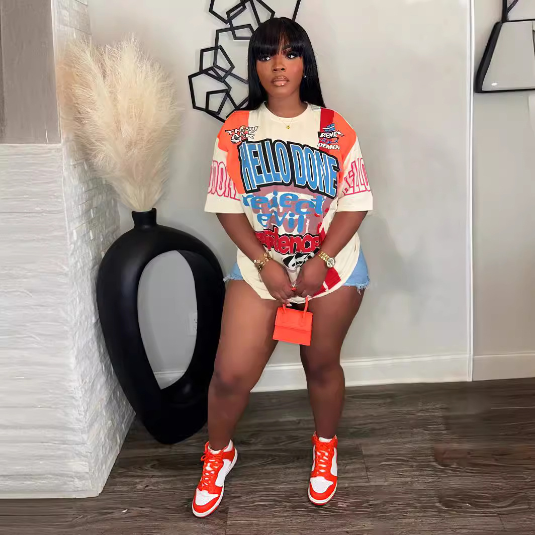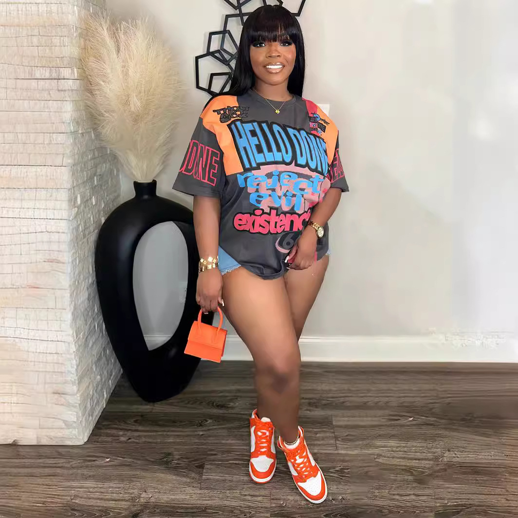 Round Neck Loose Multi-color Letters Street Fashion