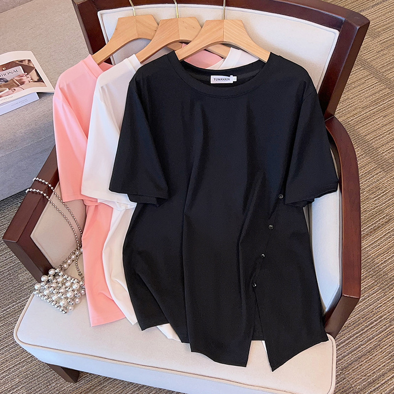 Round Neck New Plus-sized Plus Size Slimming Loose Mid-length Short Sleeve