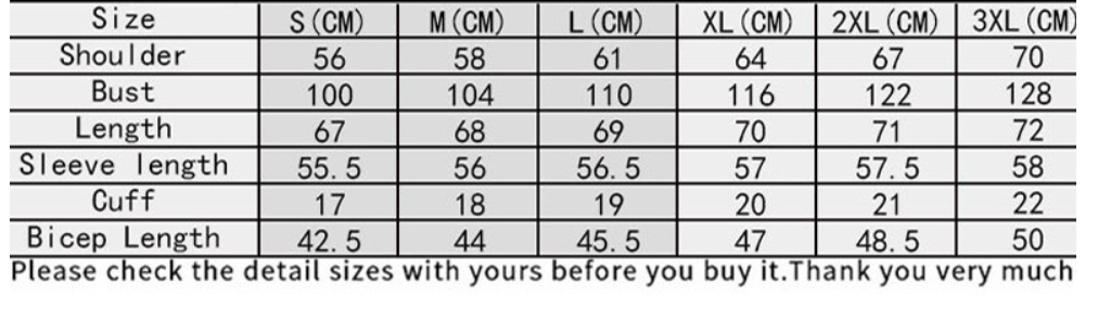 1. Asian sizes are 1 to 2 sizes smaller than European and American people. Choose the larger size if your size between two sizes. Please allow 2-3cm differences due to manual measurement. 2. Please check the size chart carefully before you buy the item, if you don't know how to choose size, please contact our customer service. 3.As you know, the different computers display colors differently, the color of the actual item may vary slightly from the following images.