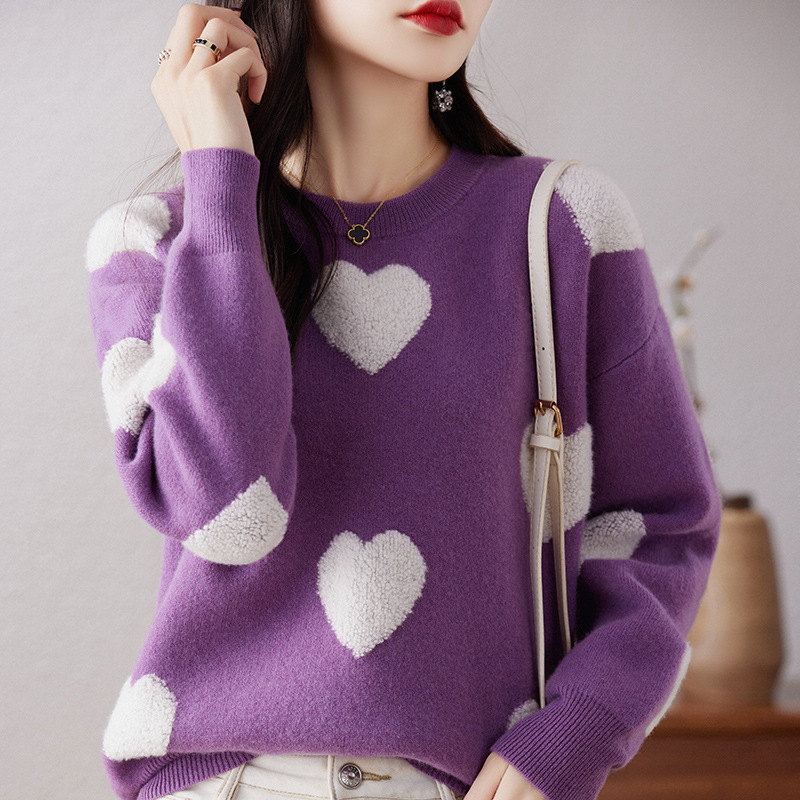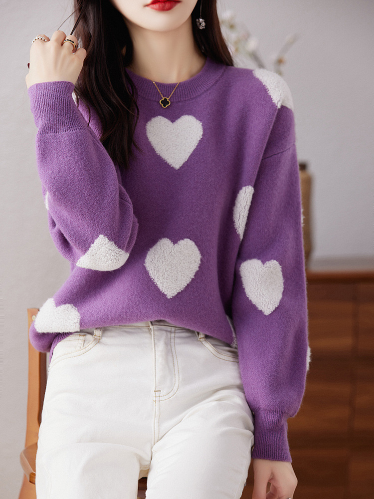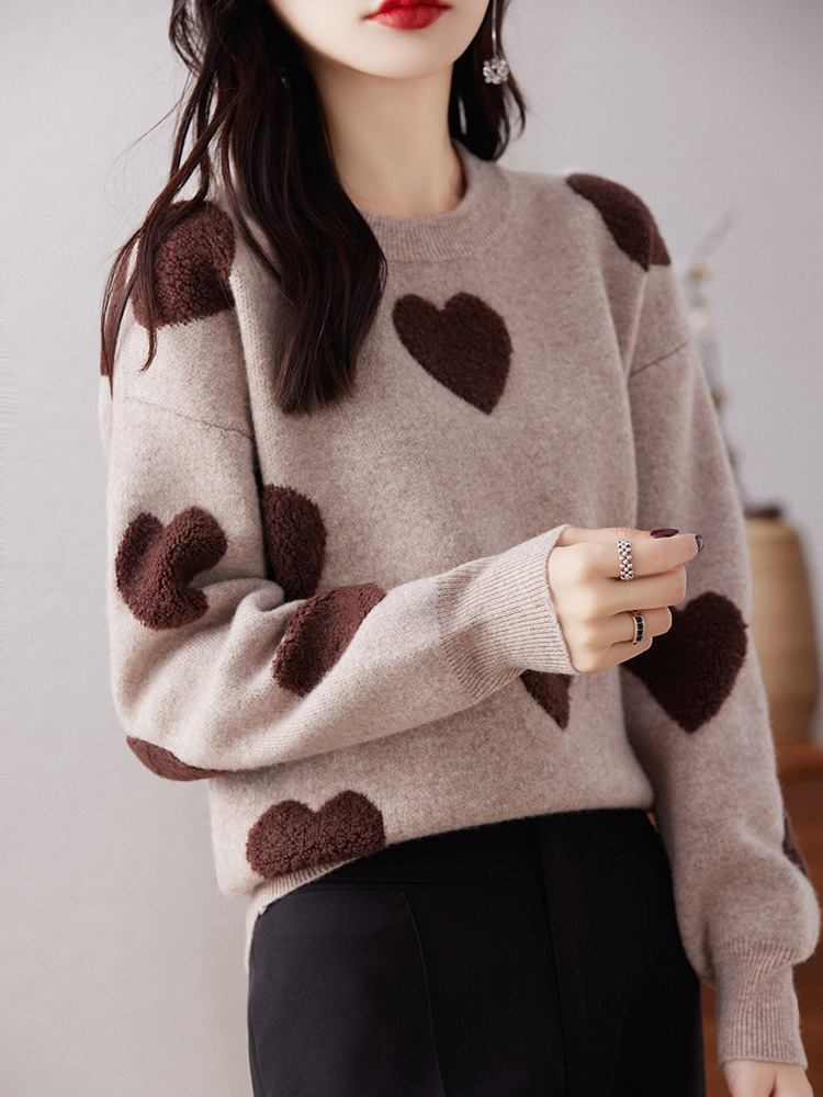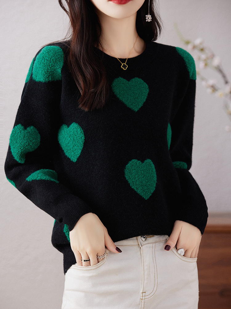 Round Neck Pullover Love Pure Wool Sweater Ladies