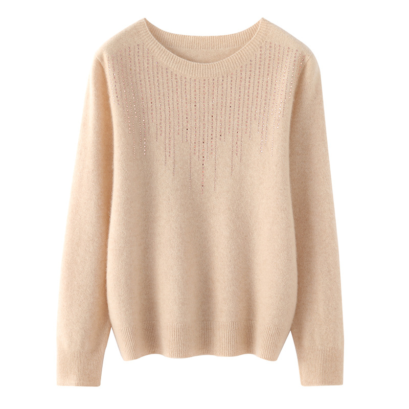 Round Neck Rhinestone Long-sleeved Knitted Bottoming Shirt Women's Pullover Sweater