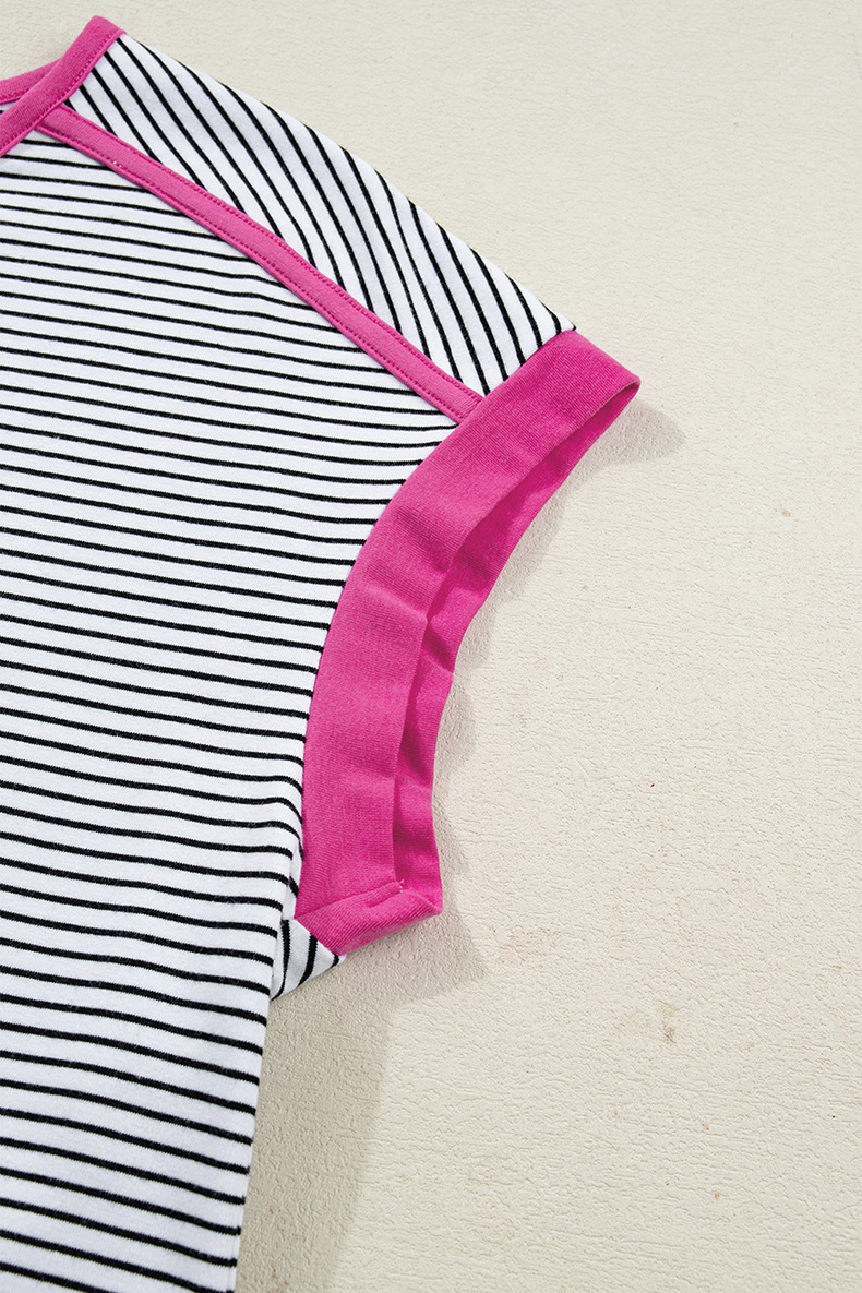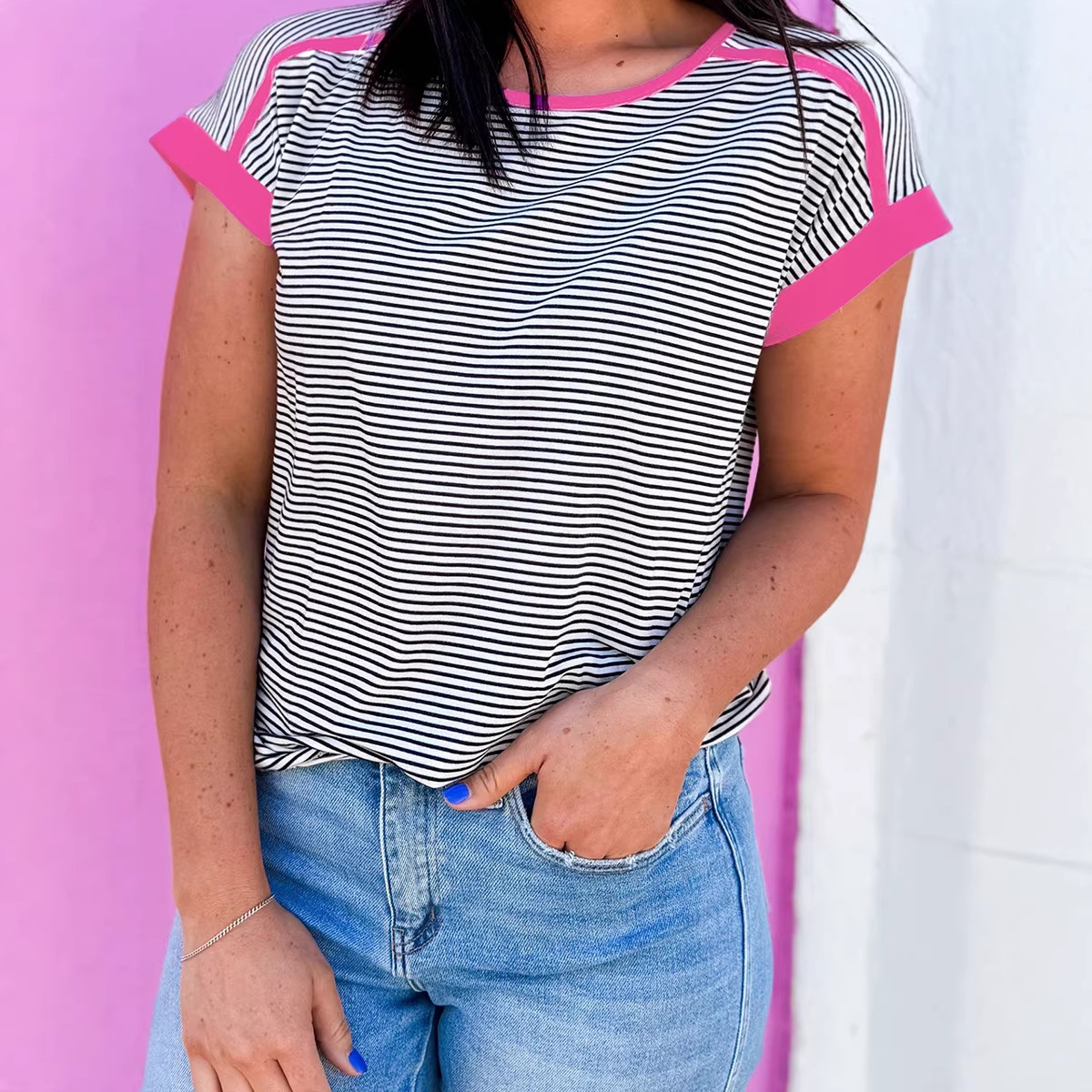 Round-neck Short-sleeve Top Striped Color-block T-shirt