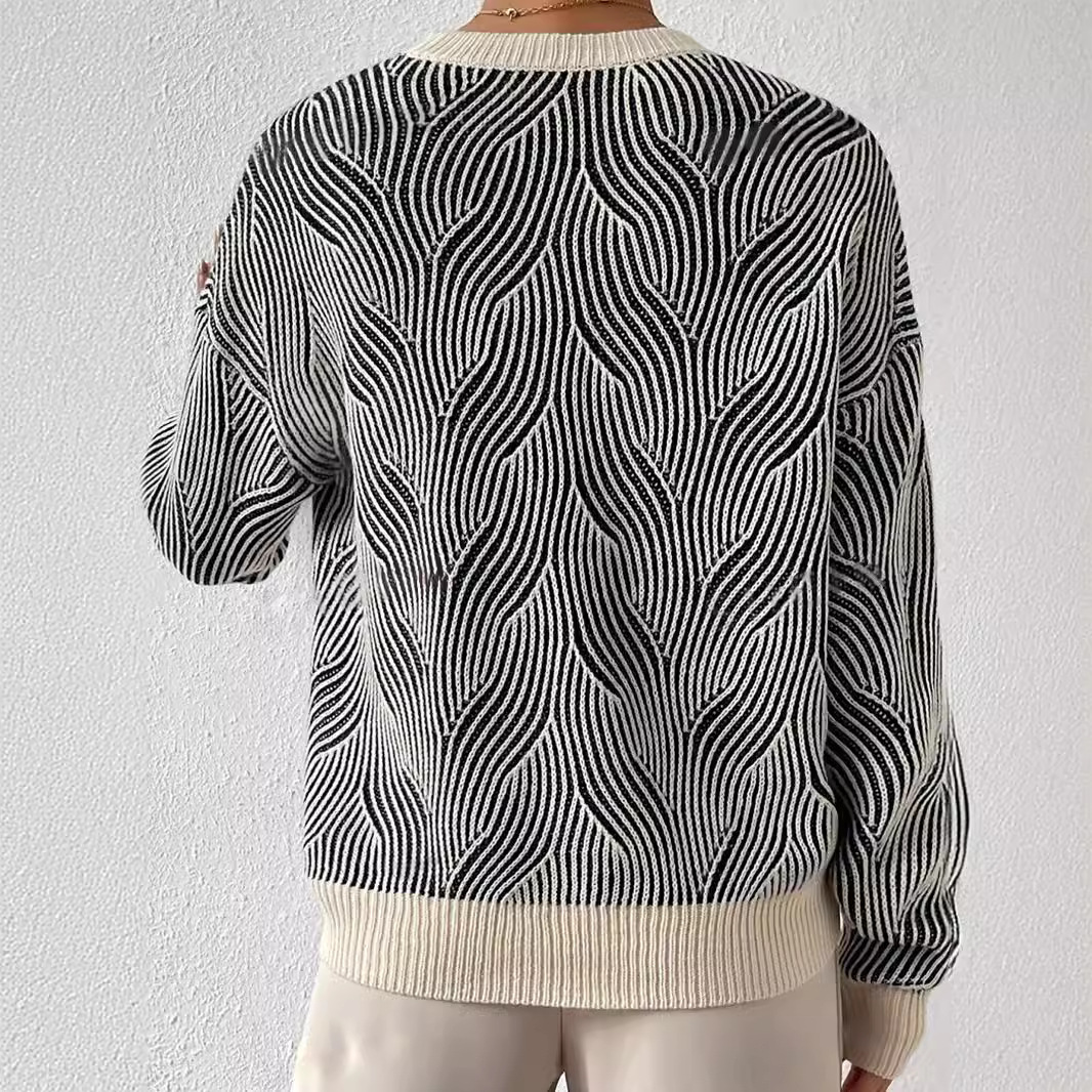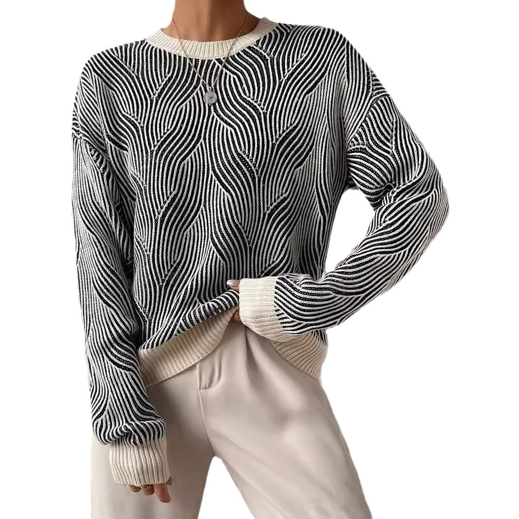 Round Neck Striped Contrast Color Casual Fashion All-matching Knitted Sweater
