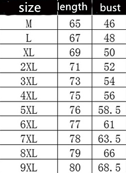Size: M, L, XL, XXL, XXXL, XXXXL, 5XL, 6XL, 7XL, 8XL, 9XL
