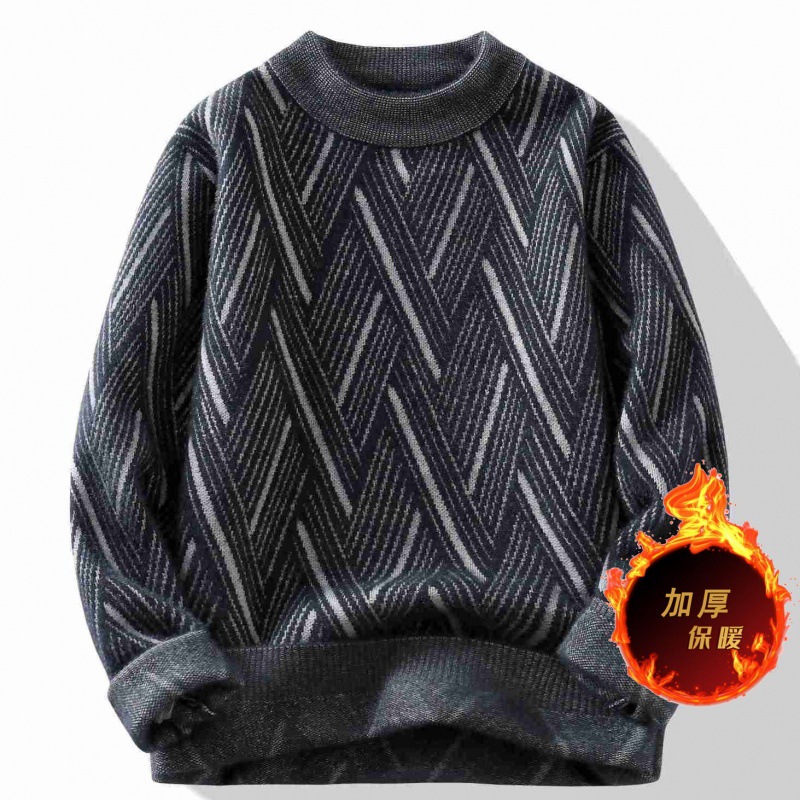 Round Neck Sweater Men's Winter Rhombus Sweater