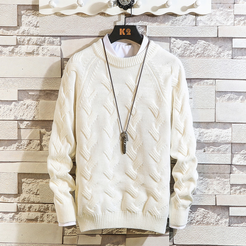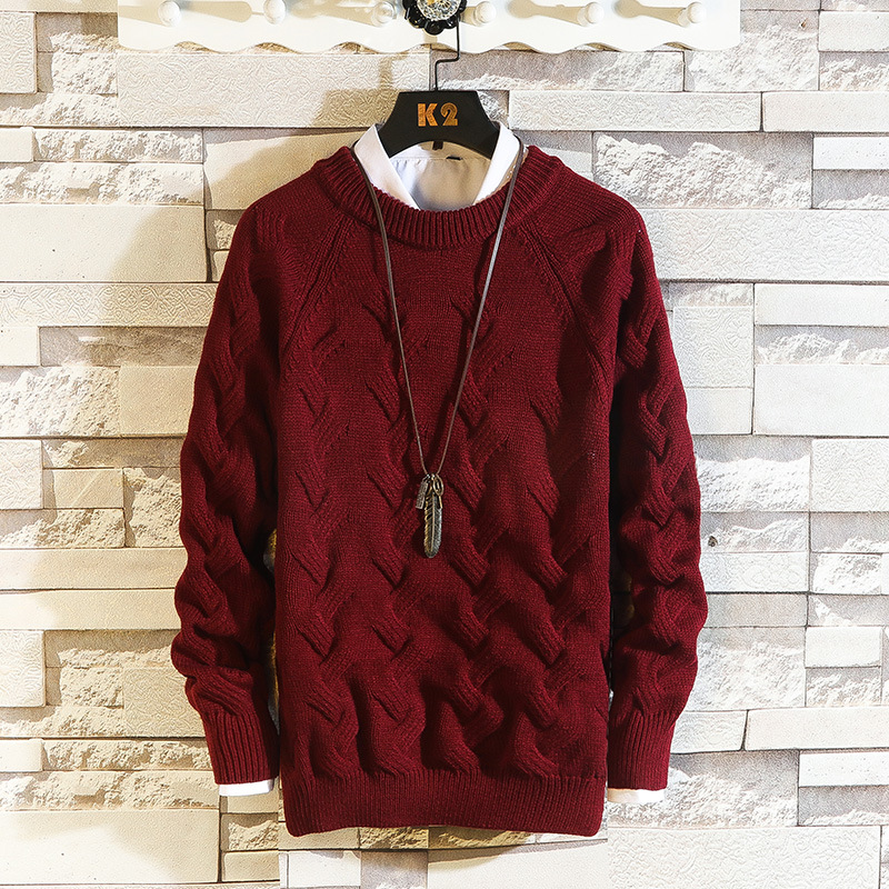 Round Neck Sweater Sportsmen Solid Color Pullover Sweater