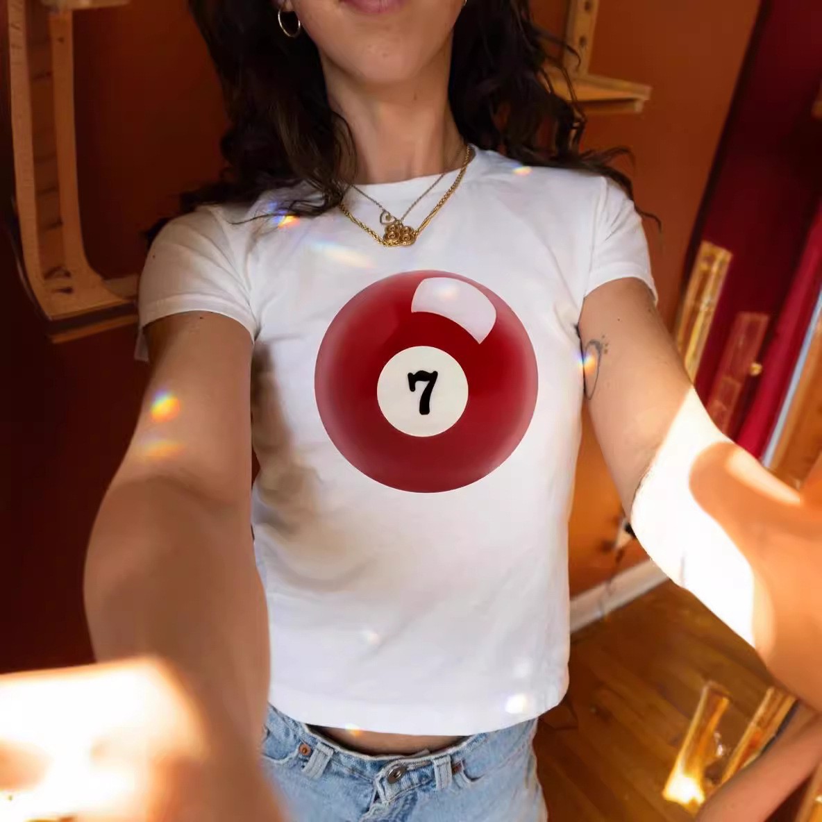 Round Neck T-shirt All-match Letters Printed Midriff-baring Short Sleeve