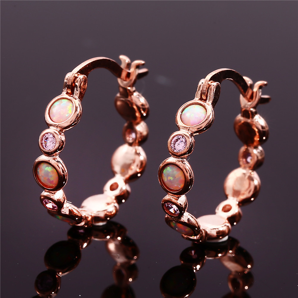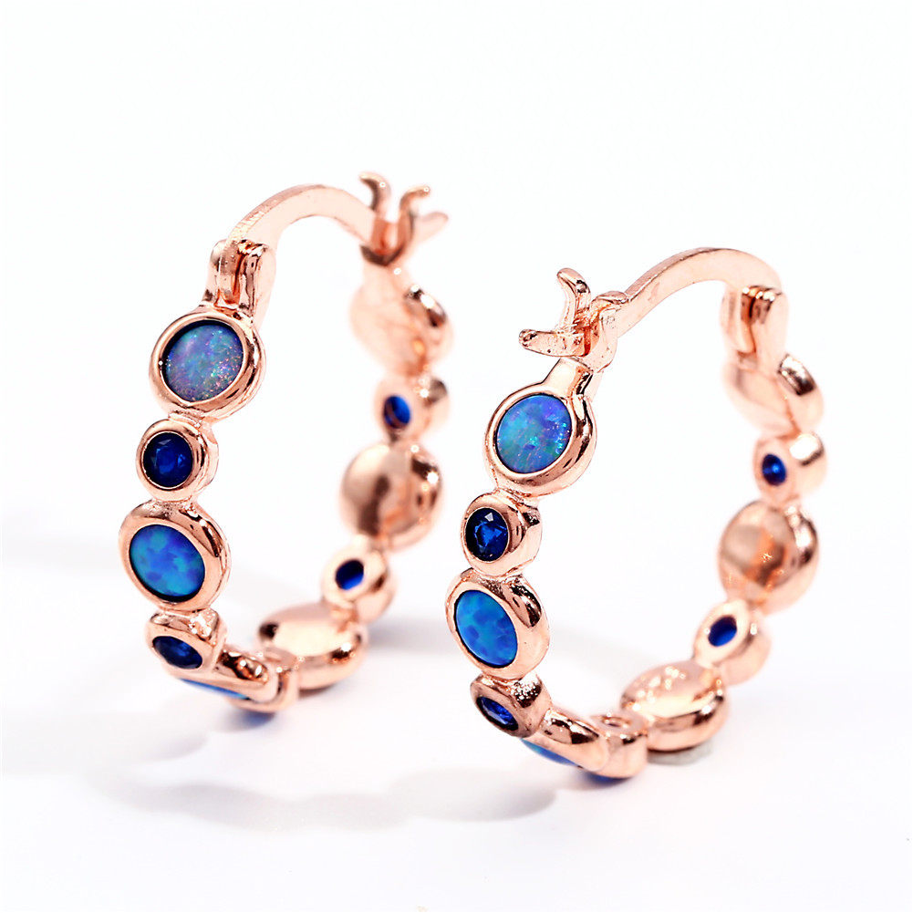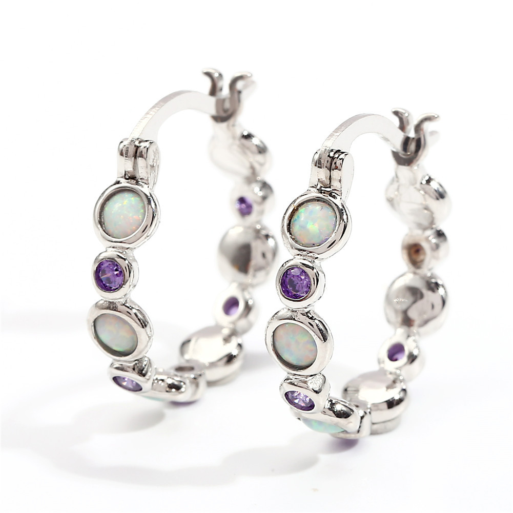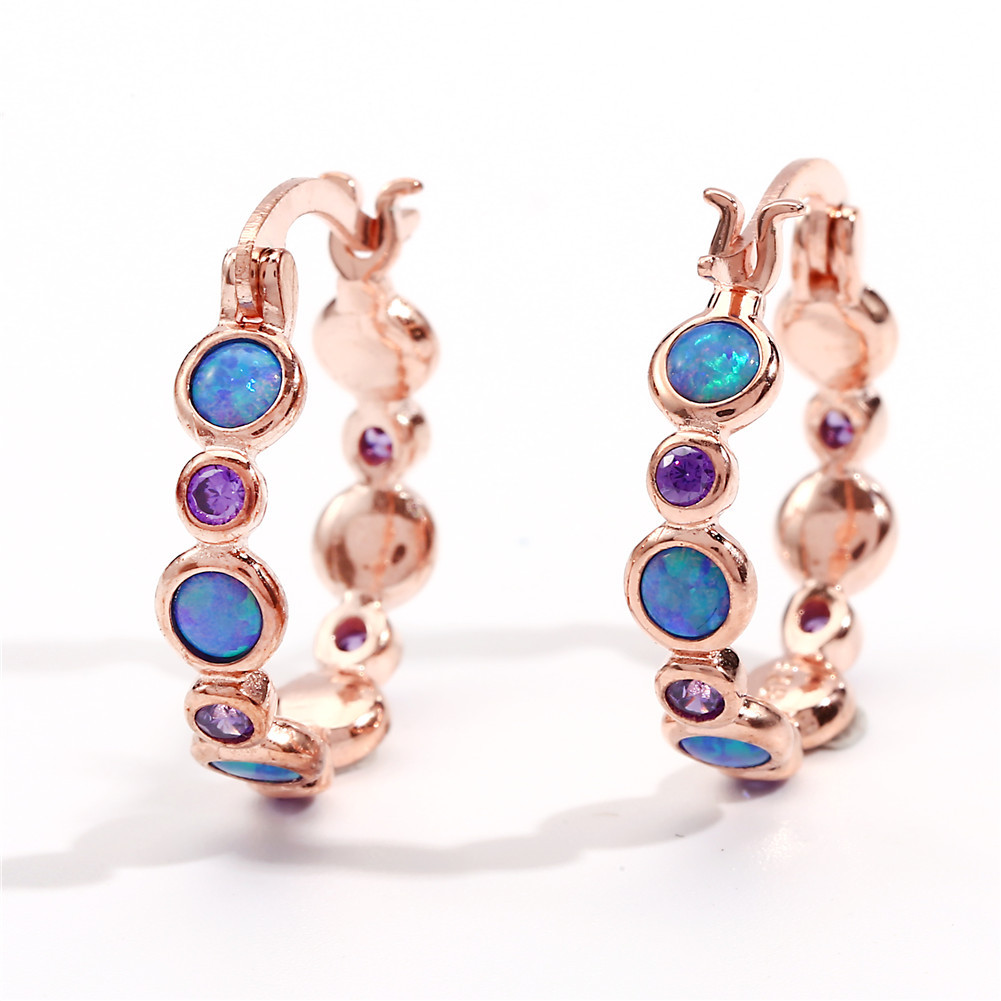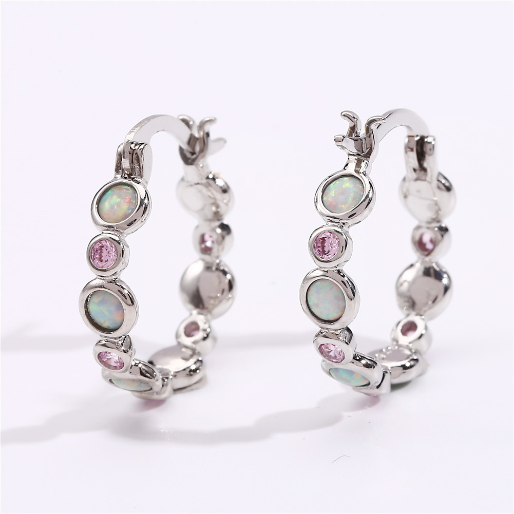 Round Opal Color Zircon Full Diamond Ring Ear Clip Female