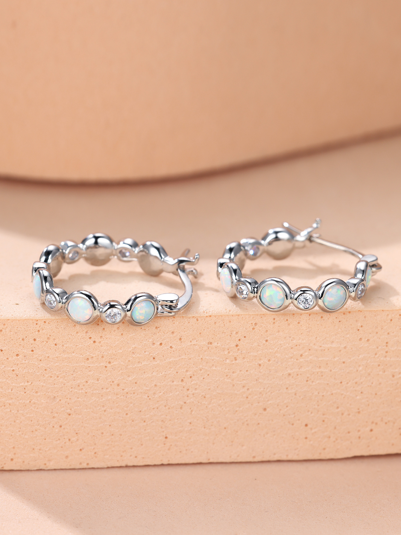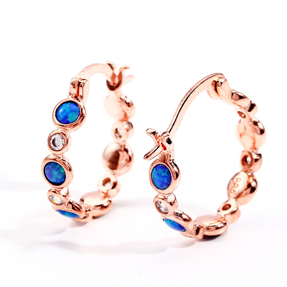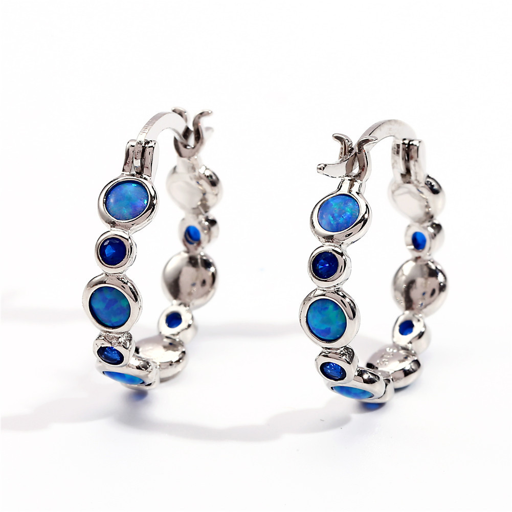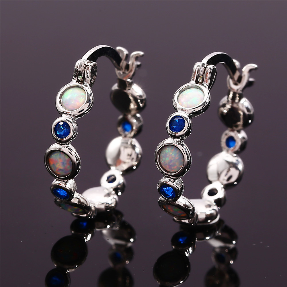 Round Opal Color Zircon Full Diamond Ring Ear Clip Female