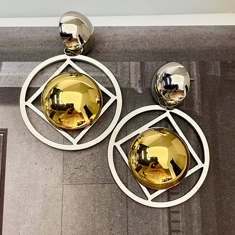 Color: color block geometric metal earrings (Sterling Silver Needle)