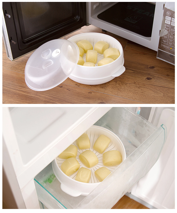 Food-grade PP material, environmental protection and safety, can be heated in a microwave oven, steamed buns, steamed buns, etc., without losing moisture, can also be stored in the refrigerator, convenient and practical.