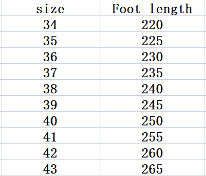 Size: 34, 35, 36, 37, 38, 39, 40, 41, 42, 43