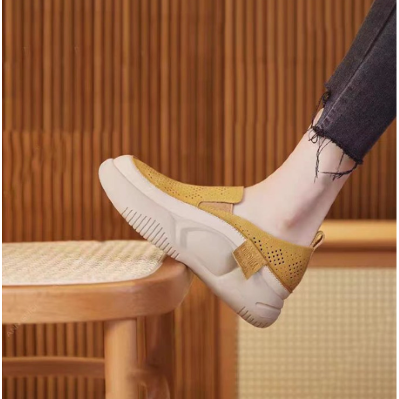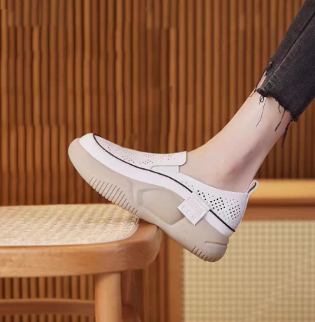 Round toe cap hollow-out loafers