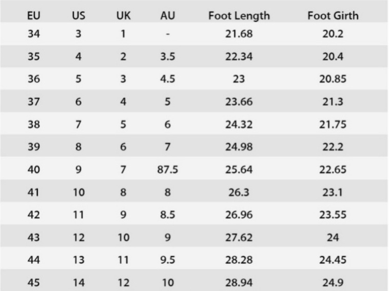 1. Asian sizes are 1 to 2 sizes smaller than European and American people. Choose the larger size if your size between two sizes. Please allow 2-3cm differences due to manual measurement.