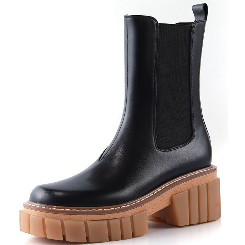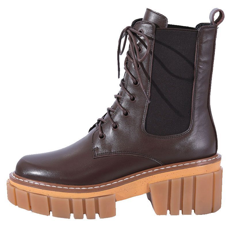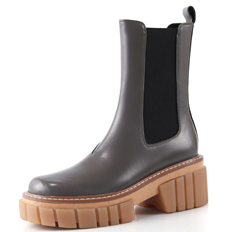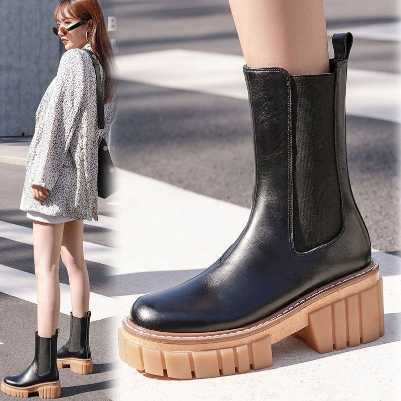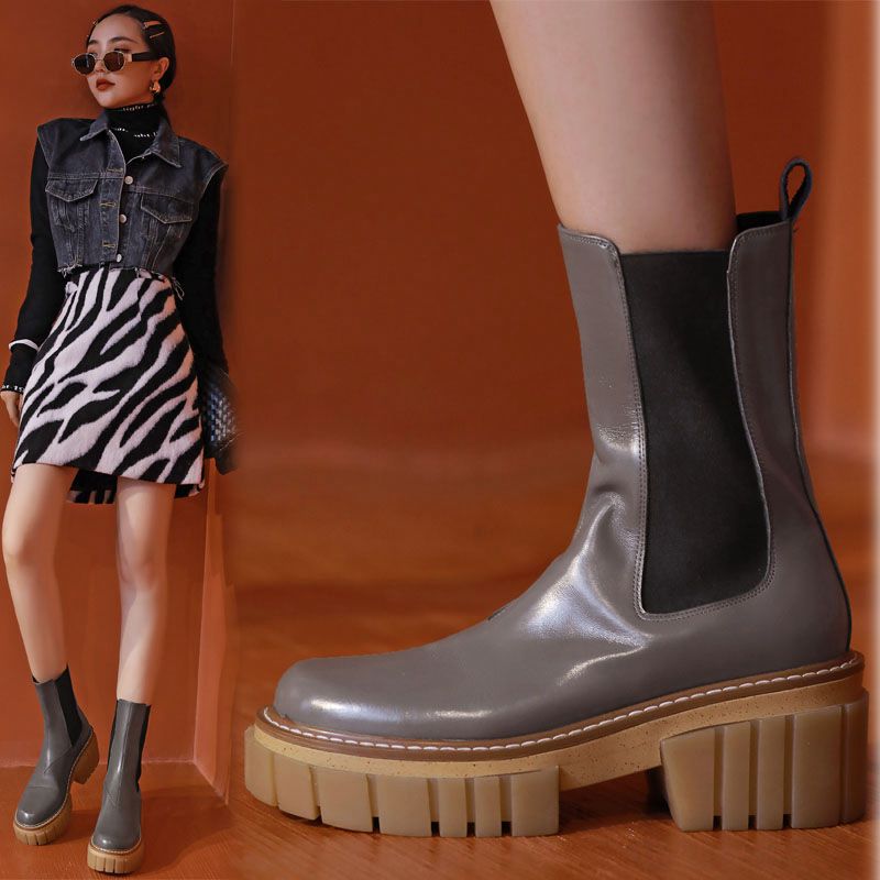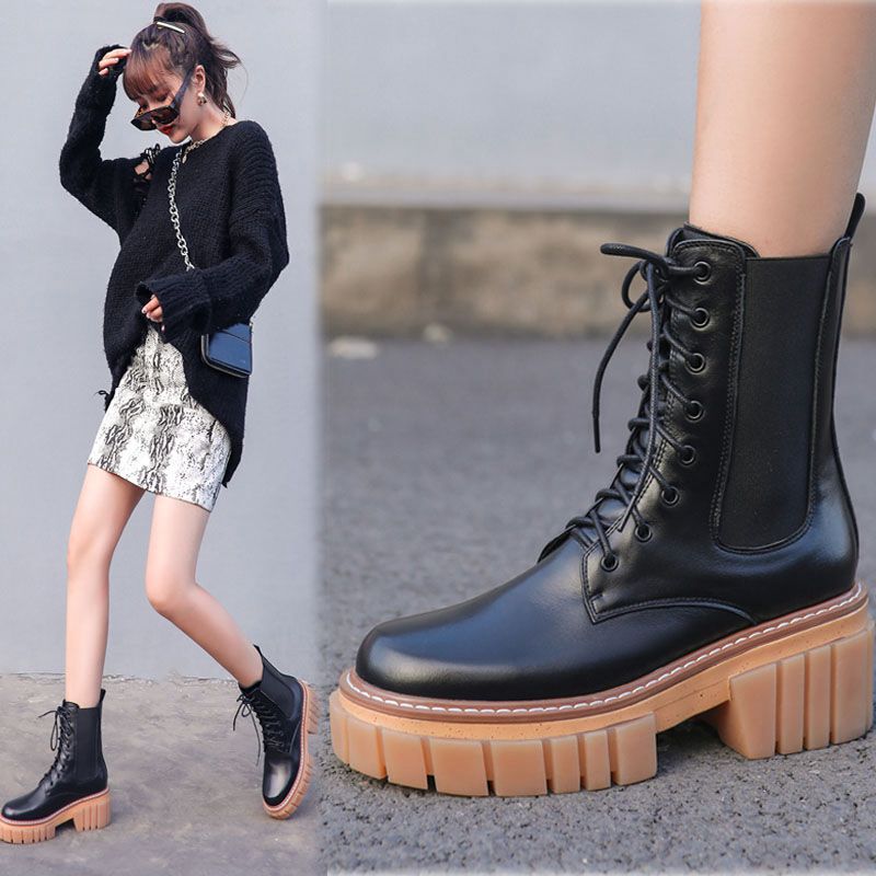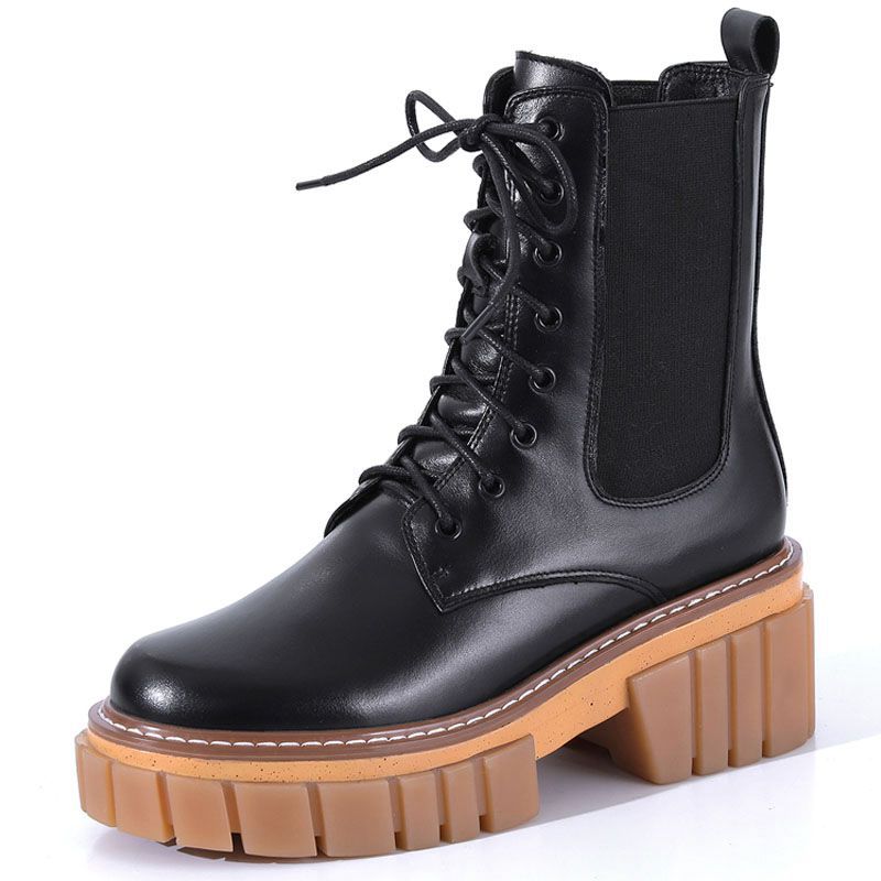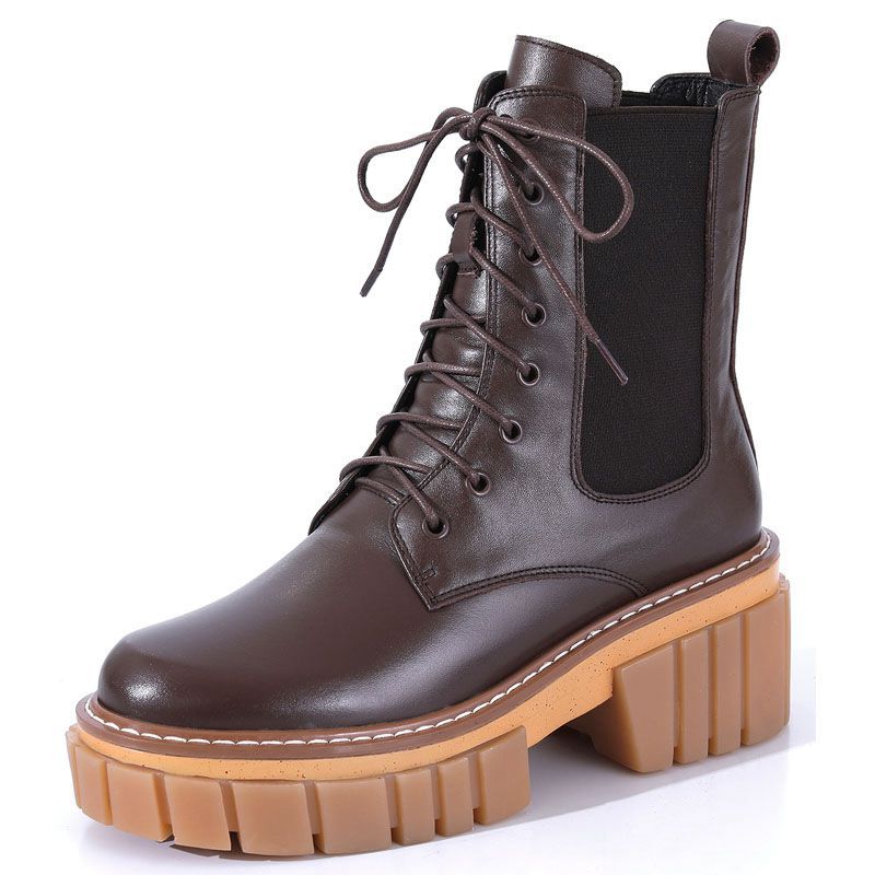 Round Toe High Heeled Leather Platform Retro Martin Ankle Boots