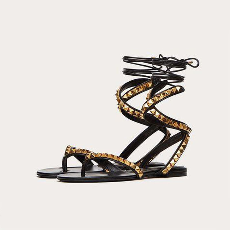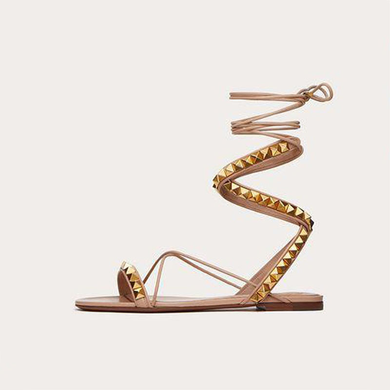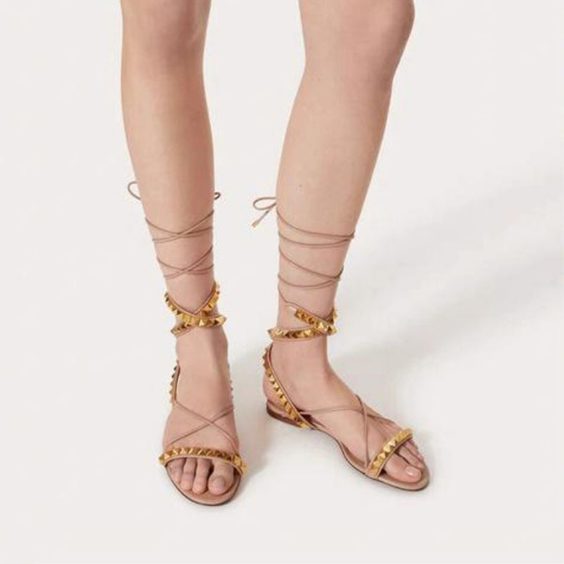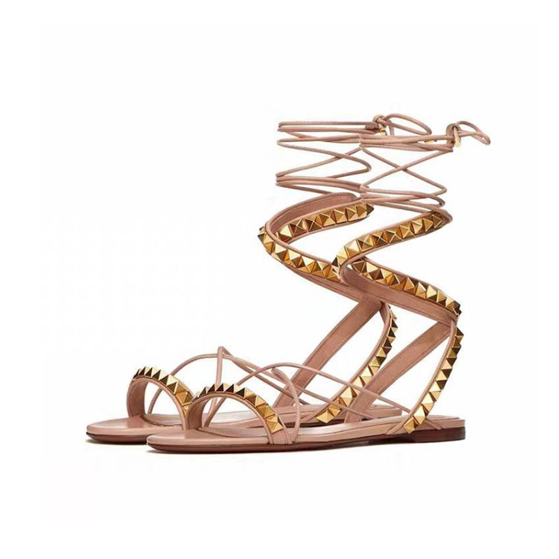Round Toe Open Toe Cross Strap Flat Roman Style Sandals European And American Style Rivet High-cut Sandals