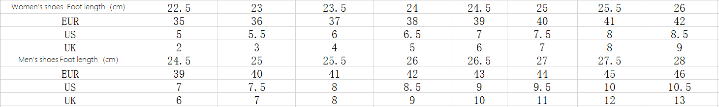 1. Asian sizes are 1 to 2 sizes smaller than European and American people. Choose the larger size if your size between two sizes. Please allow 2-3cm differences due to manual measurement.