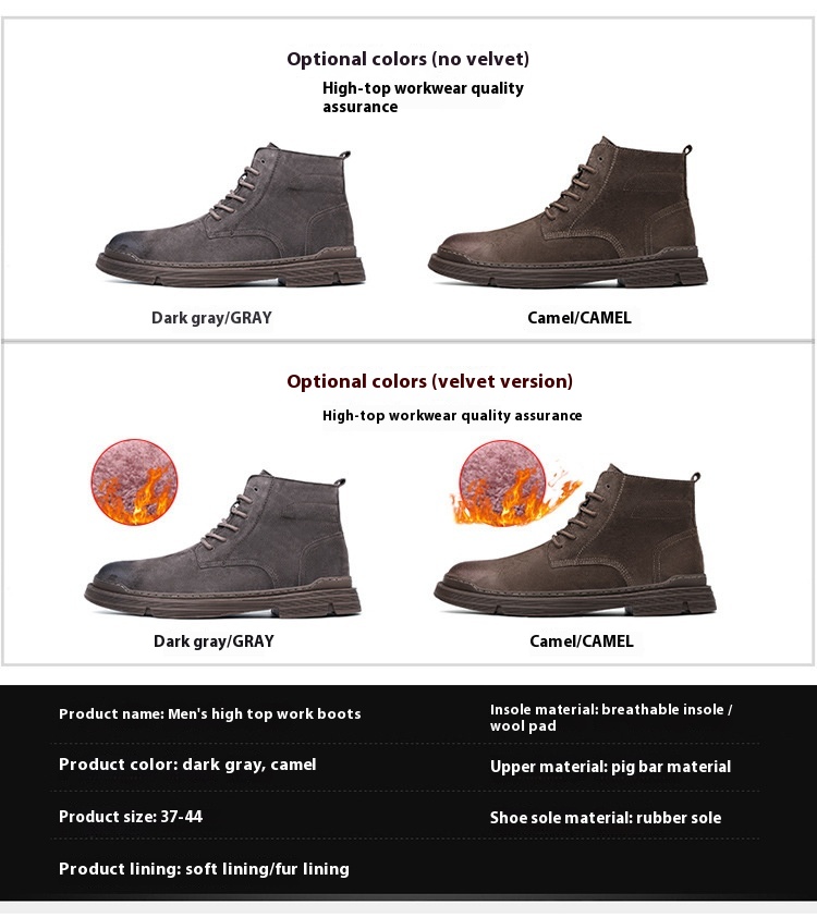 Color: dark gray [high heels] flat, camel [high heels] flat, dark gray [Velvet] flat, camel [Velvet] flat, dark gray [high heels] increased 5.5, camel [high heels] increased 5.5, dark gray [Velvet] increased by 5.5, camel [Velvet] increased by 5.5