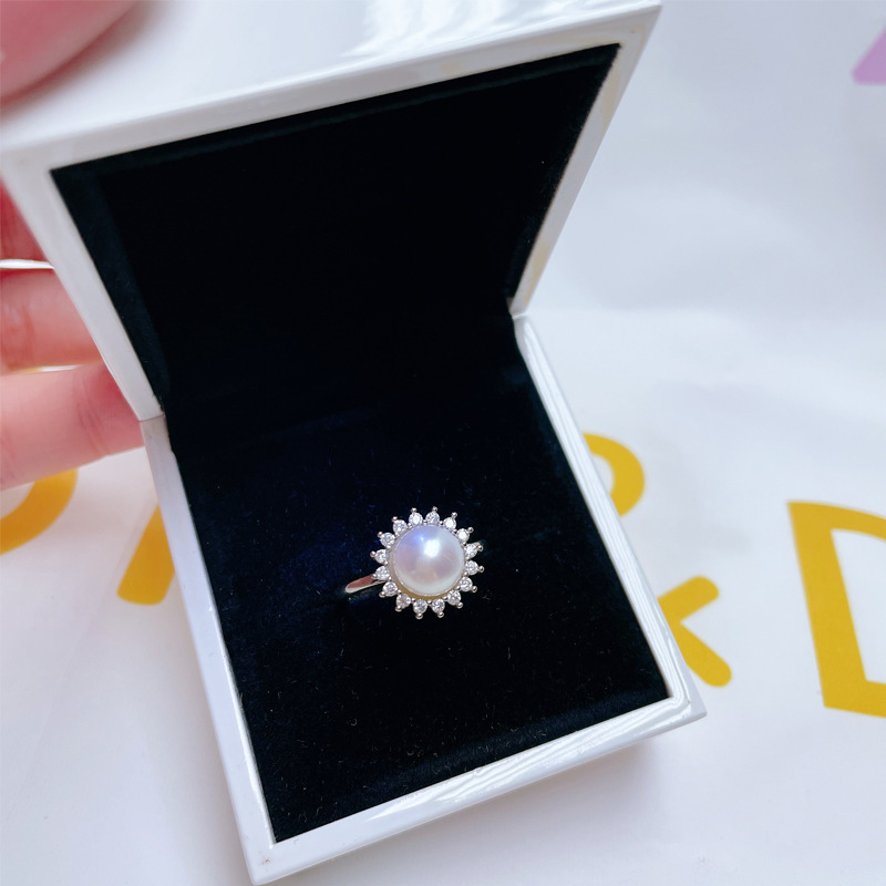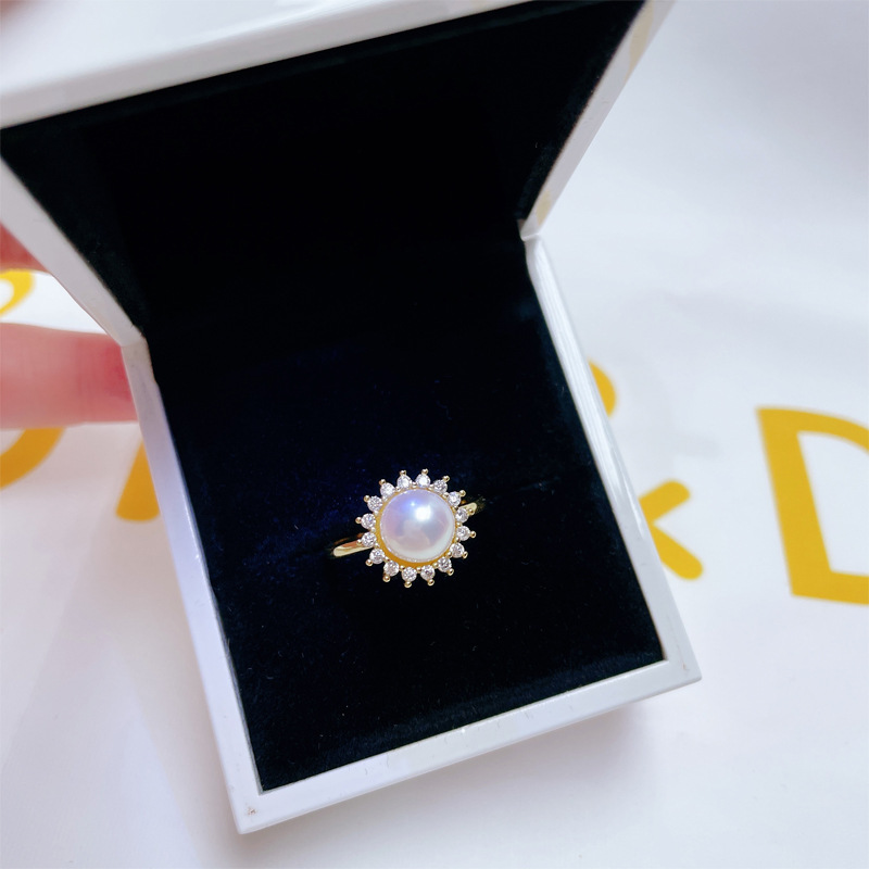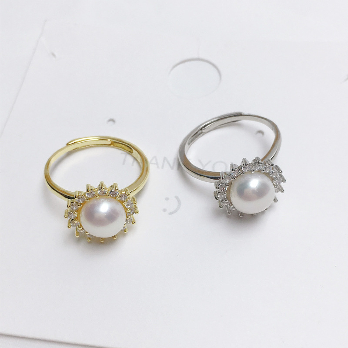 Round Zircon Natural Freshwater Pearl White Copper Plating Golden Ring