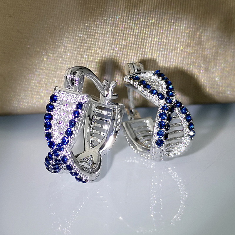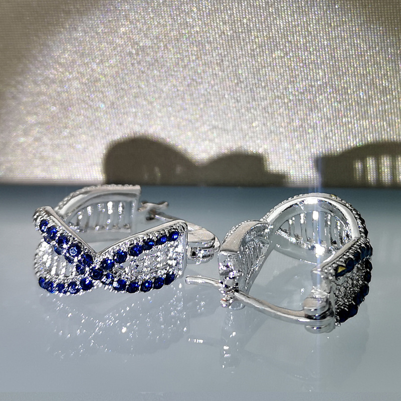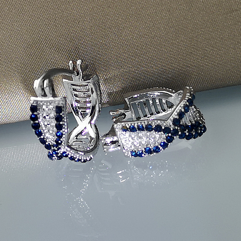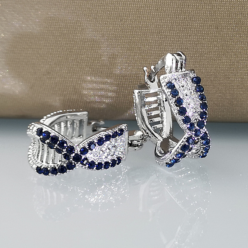 Product information:Color: white gold sapphire blue Material: Copper Shape: Geometry Popular elements: Chamfering square pattern