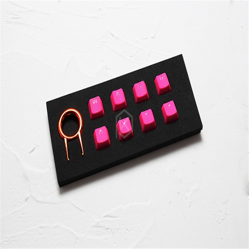 Rubber gaming key caps with 8 keys, please note that this paragraph is a light-transmitting section. It is WASD + arrow keys. The height is OEM height.