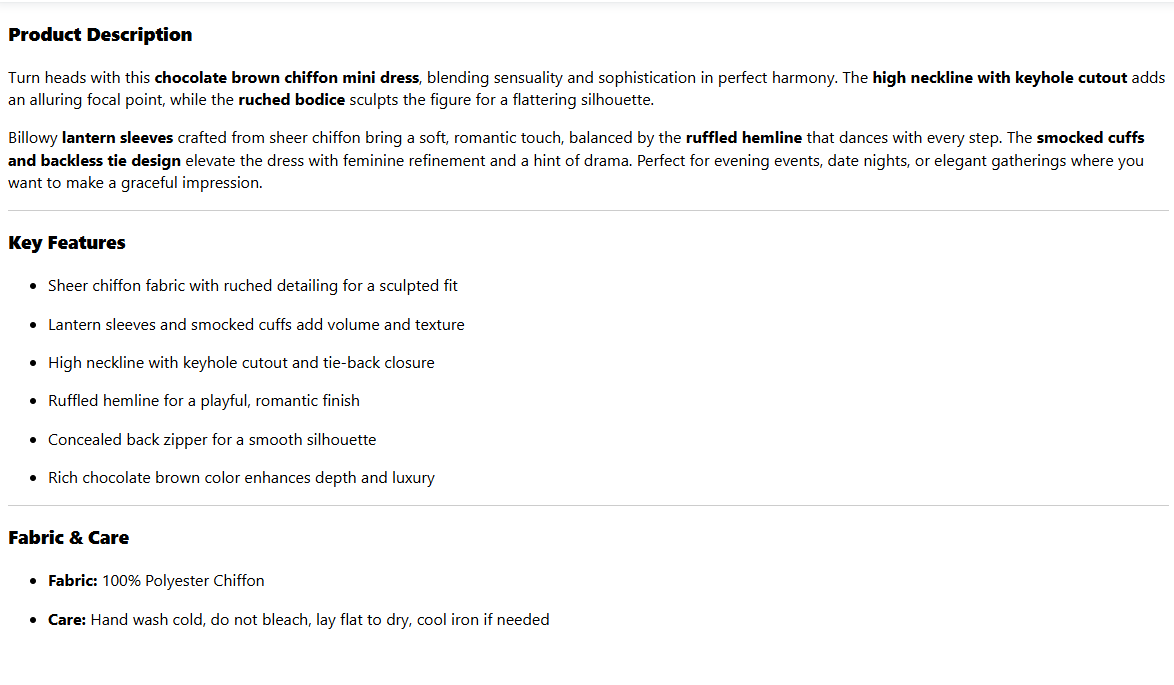 Ruched Chiffon Mini Dress With Lantern Sleeves And Ruffled Hem In Chocolate Brown