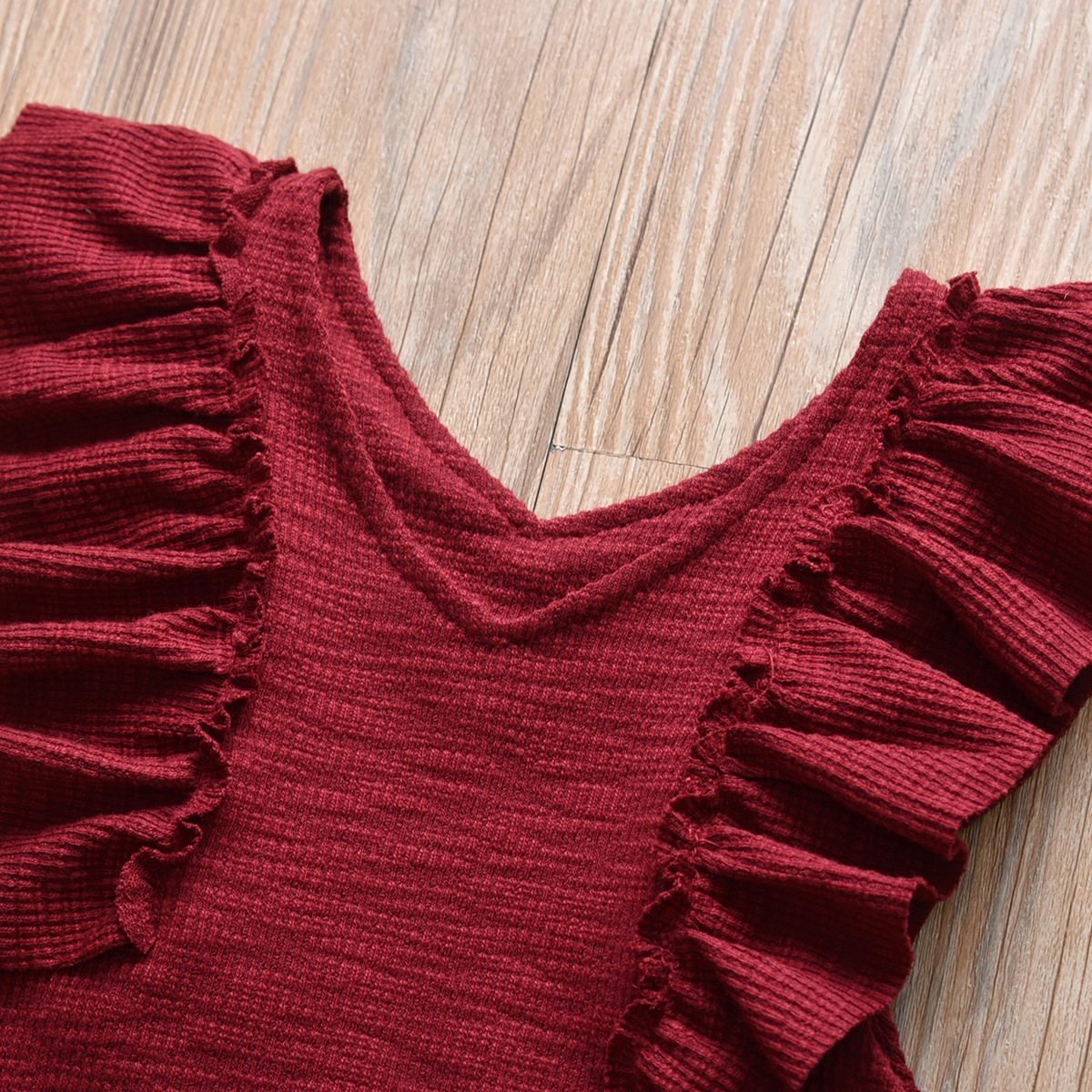Ruffle Edge Sleeve Solid Color Jumpsuit