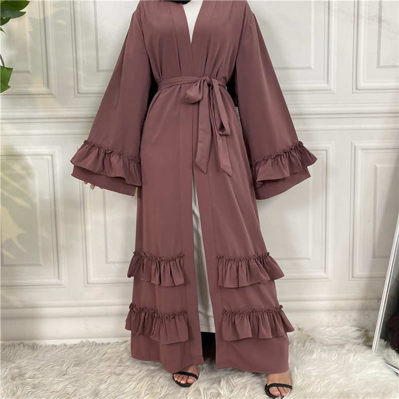 Ruffled Sleeves Lace Up Dubai Arab Cardigan Robe