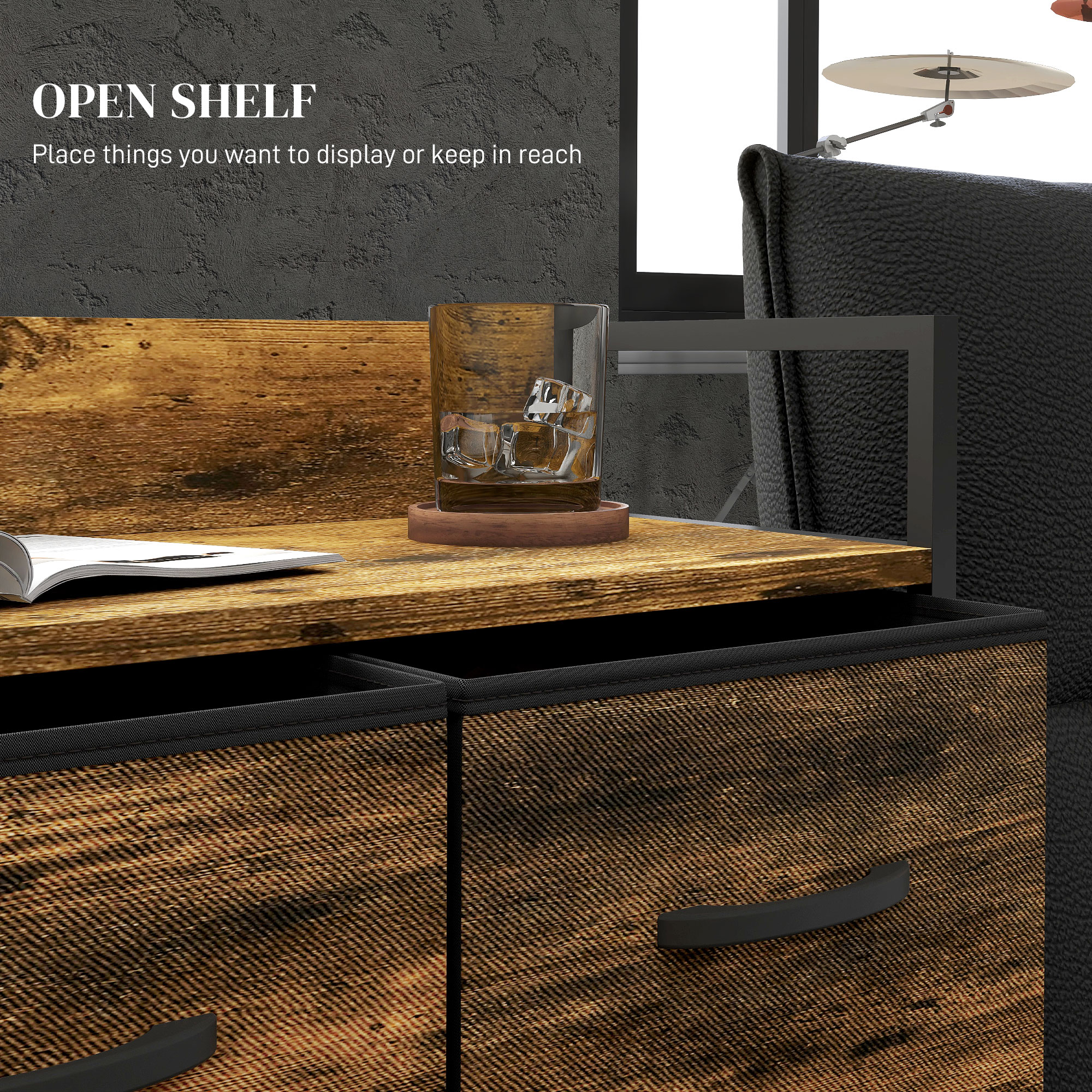 A spacious and simple approach to clothes storage, with this chest of drawers. It comes in industrial and rustic wood-effect design, a minimal and versatile look: it's great for plenty of different interior styles. This dresser comes with four drawers for storing and organising various garments. A powder coated steel frame for a strong core, finished with adjustable feet for balance.