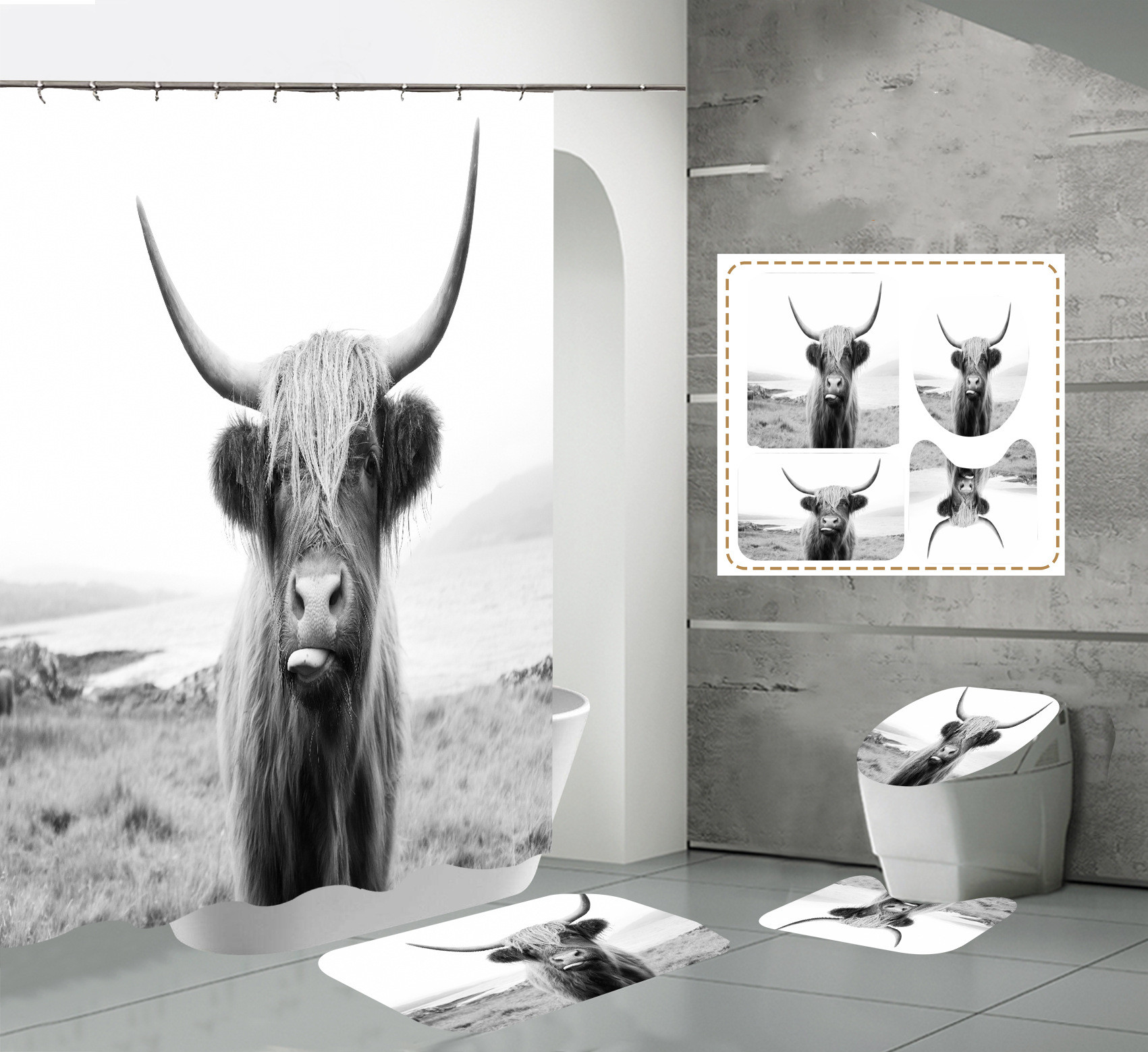 Bathroom antique farm cow shower curtain for bathroom, watercolor hippie cow with daisy shower (can also be used for puppies, elephants and bulls, see "variables" tab)