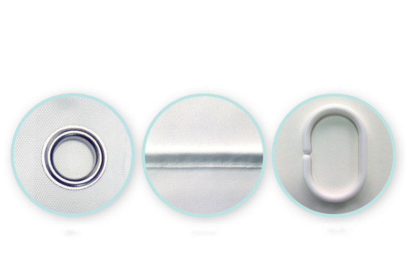 Material: Polyester fabric. It is a lightweight fabric shower curtain, but it is well-made, strong and durable, with a soft entrance and an elegant touch.
