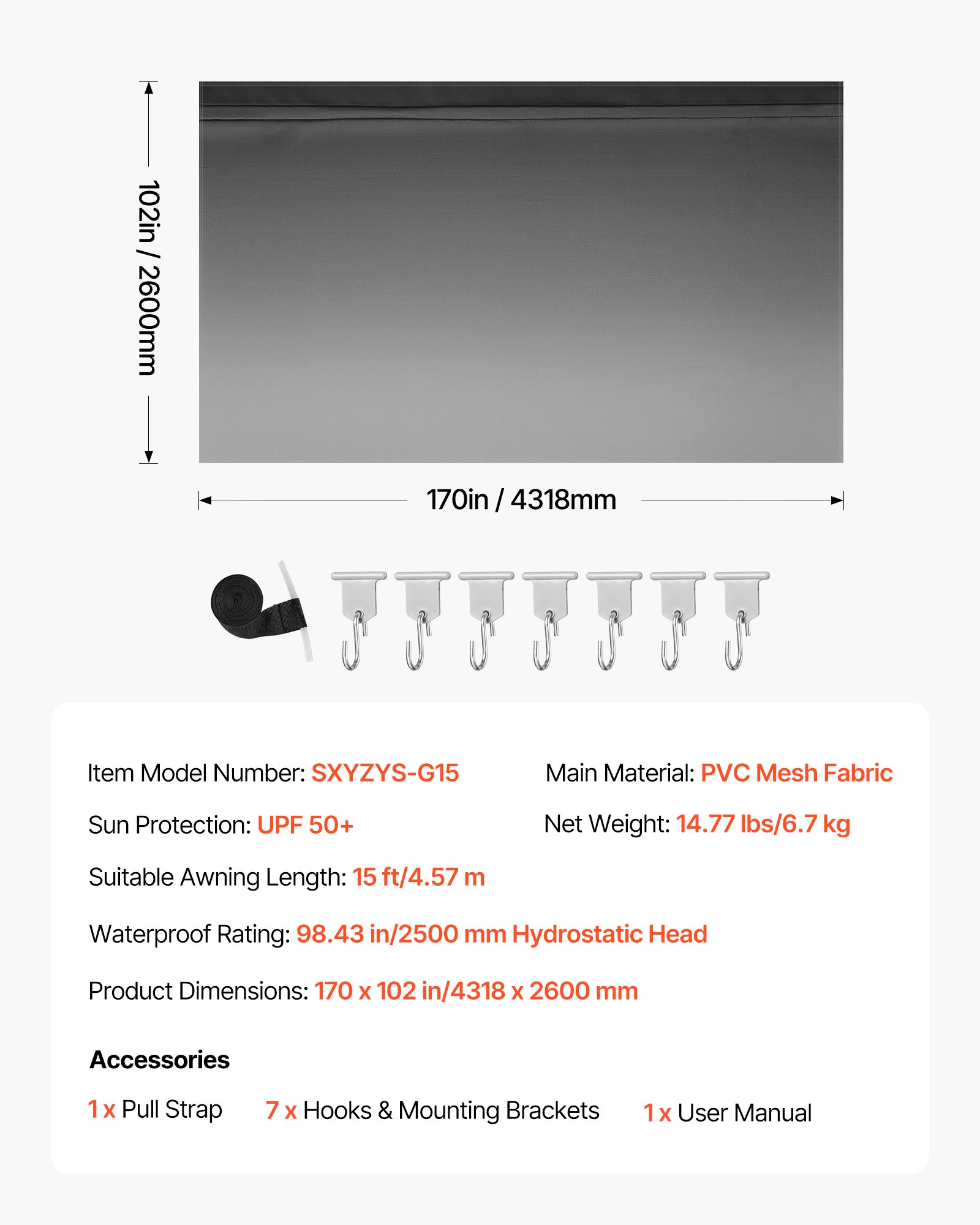 UPF 50+ & Waterproof: This RV awning fabric replacement blocks 98% of harmful sunlight and withstands up to 98.43 in (2500 mm) hydrostatic head. It keeps your RV dry and cool in rain or intense sun while resisting dampness