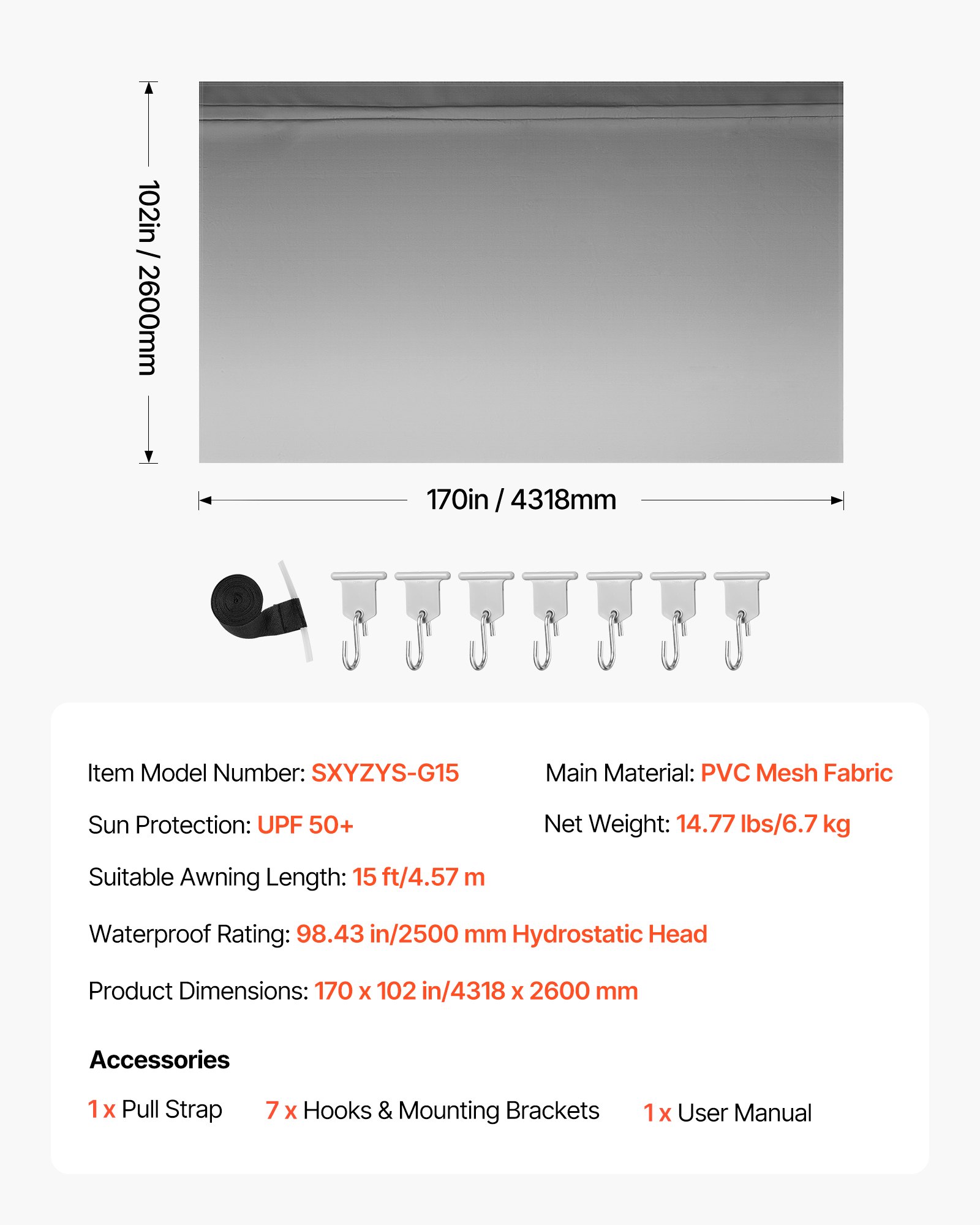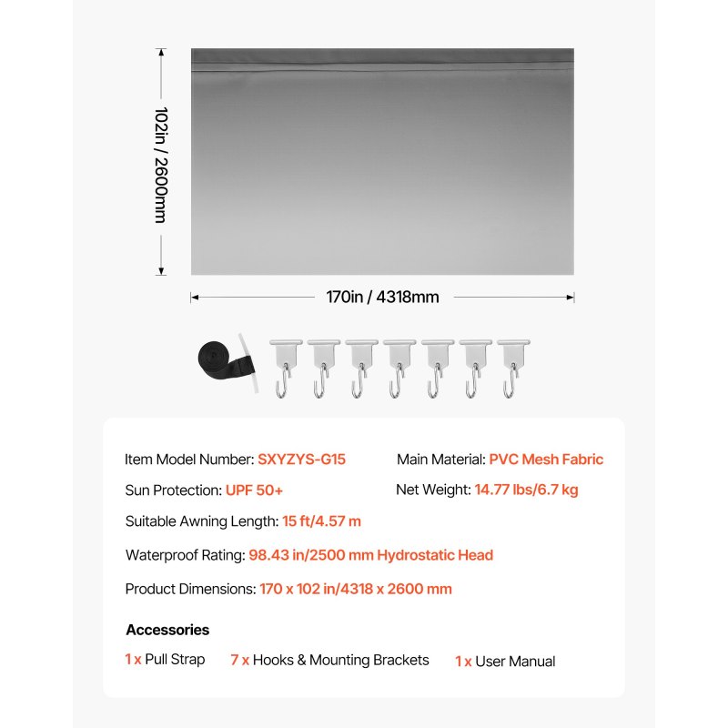UPF 50+ & Waterproof: This RV awning fabric replacement blocks 98% of harmful sunlight and withstands up to 98.43 in (2500 mm) hydrostatic head. It keeps your RV dry and cool in rain or intense sun while resisting dampness